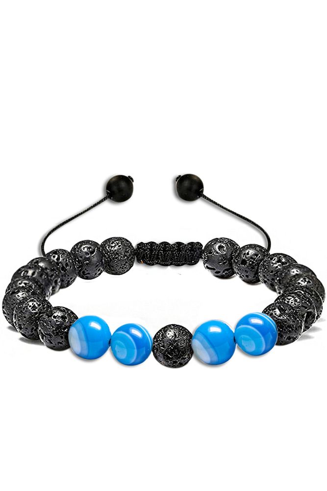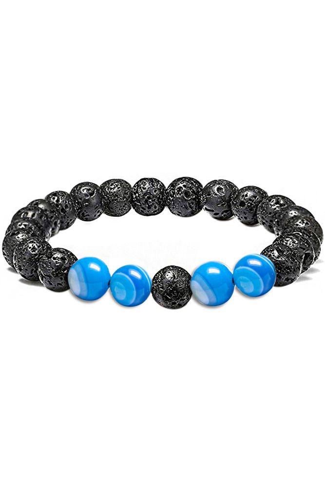 Sertifikalı Doğal Mavi Akik Volkanik Lav Taşı Doğal Taş Bileklik Seti