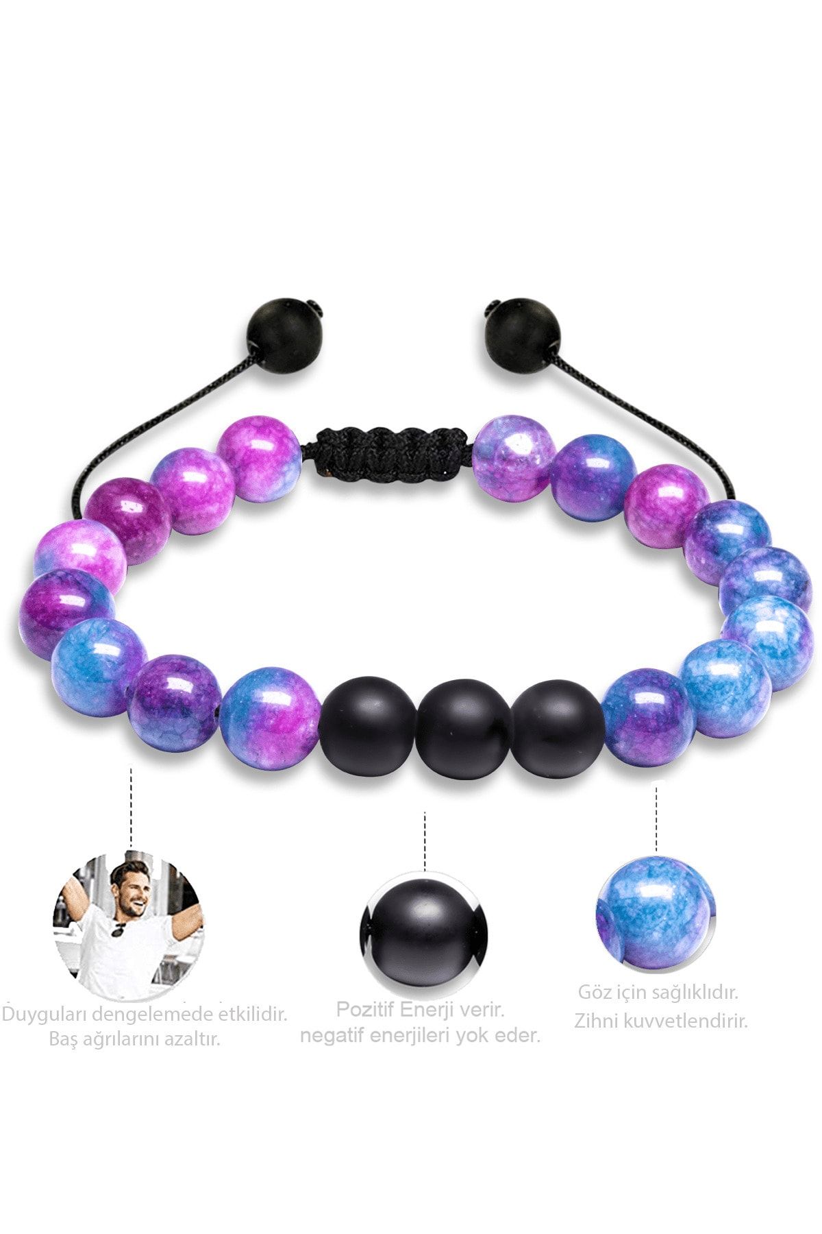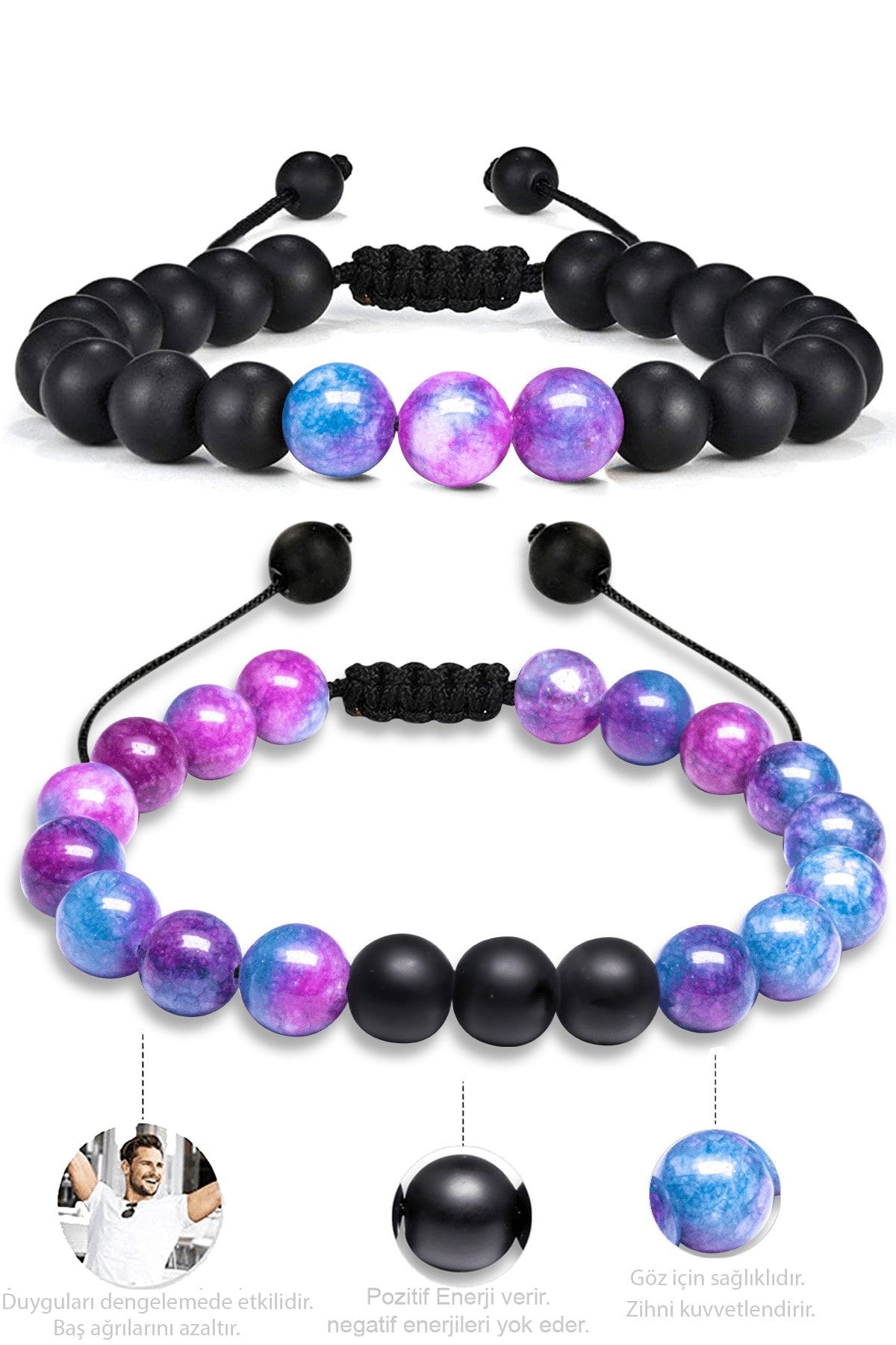 Sertifikalı Doğal Mavi Mor Kuvars Oniks Taşı Doğal Taş Bileklik Seti