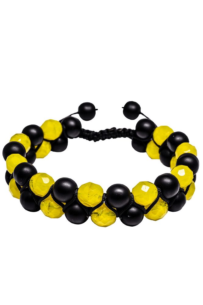 Sarı kuvars taşı canlılık ve motivasyon ile ilişkilendirilirken, oniks taşı güçlü duruşu ve kararlılığı simgeler. Günlük kullanımda hem stilinizi tamamlayan hem de anlamlı bir aksesuar olarak öne çıkan bu bileklik, güçlü bir görünüm arayanlar için ideal bir tercihtir.