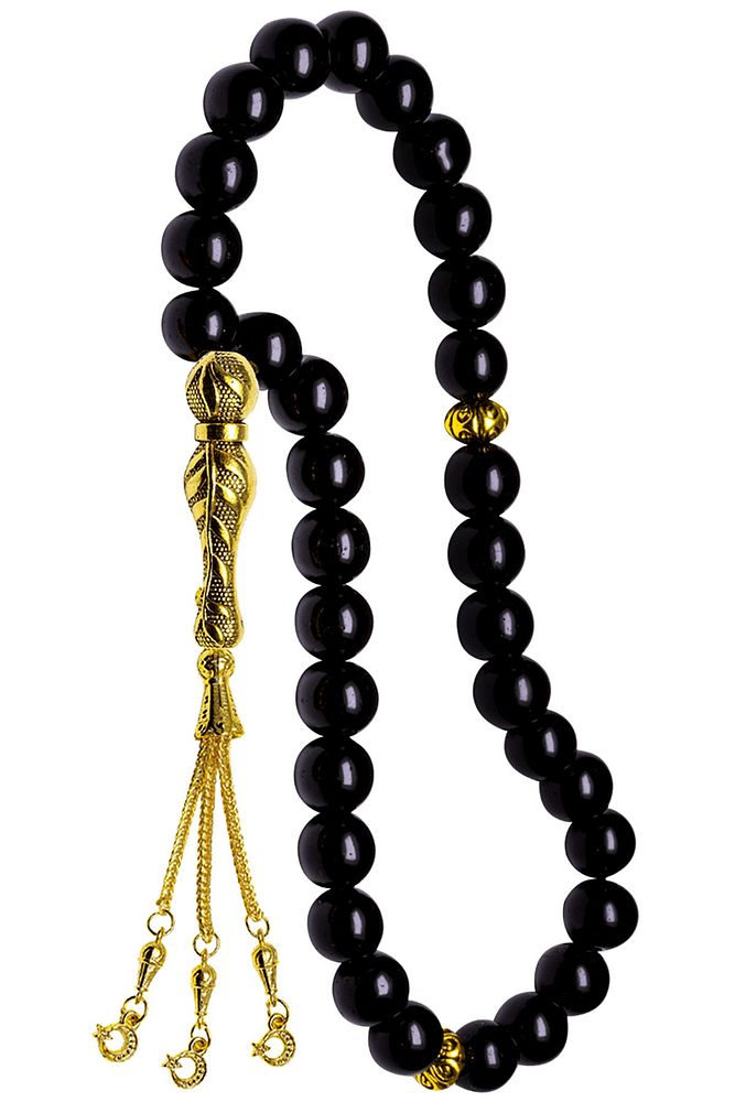 Bu tasarımda; Parlak Oniks taşı ve altın kaplama püsküllü kararmaz imame ve püskül seti kullanılmıştır. Çift kaplama atıldığı için renk atmaz ve kararmaz bir yapıya sahiptir. Üretildiği Taş : Oniks Taşı Ana Renk : Doğal Renk Ağırlık : 20-30 gr Tane Şekli : 8x8 mm Tane Ölçüsü : Küre Kesim Toplam Uzunluk : 20-30cm İmame ve Püskül Maddesi : Altın Kaplama Gümüş Alaşımlı