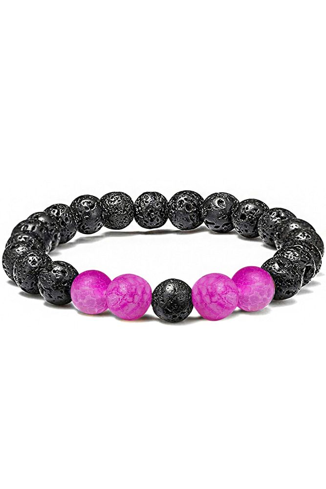 Sertifikalı Doğal Pembe Akik Volkanik Lav Taşı Doğal Taş Bileklik Seti