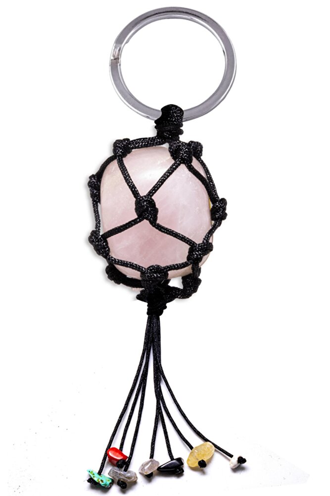 Sertifikalı Doğal Pembe Kuvars Taşı Doğal Taş Anahtarlık
