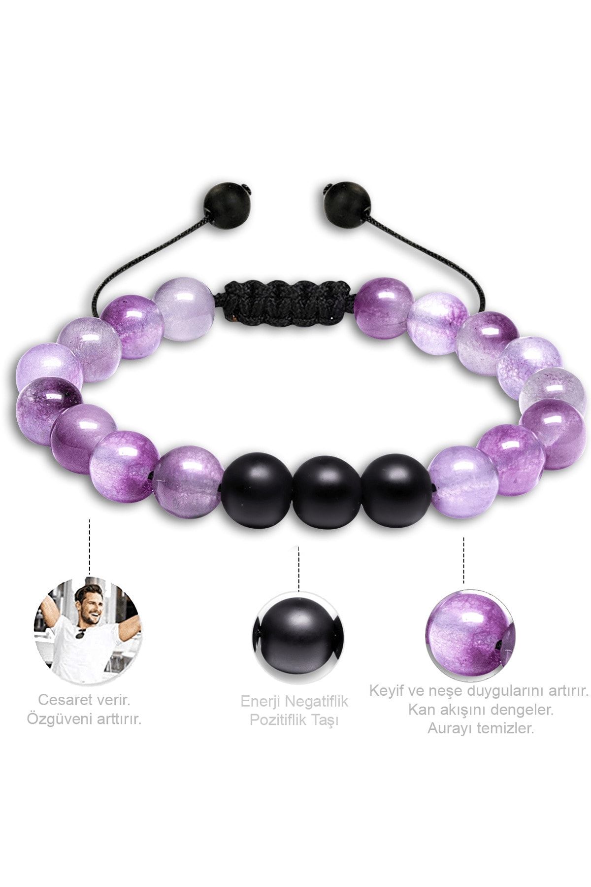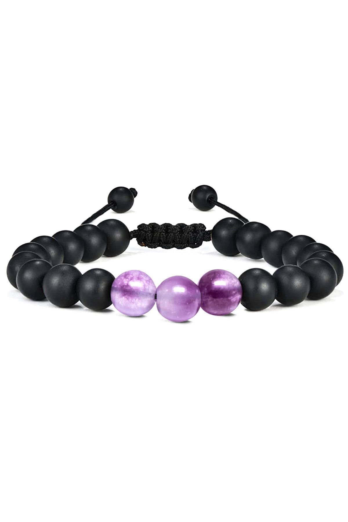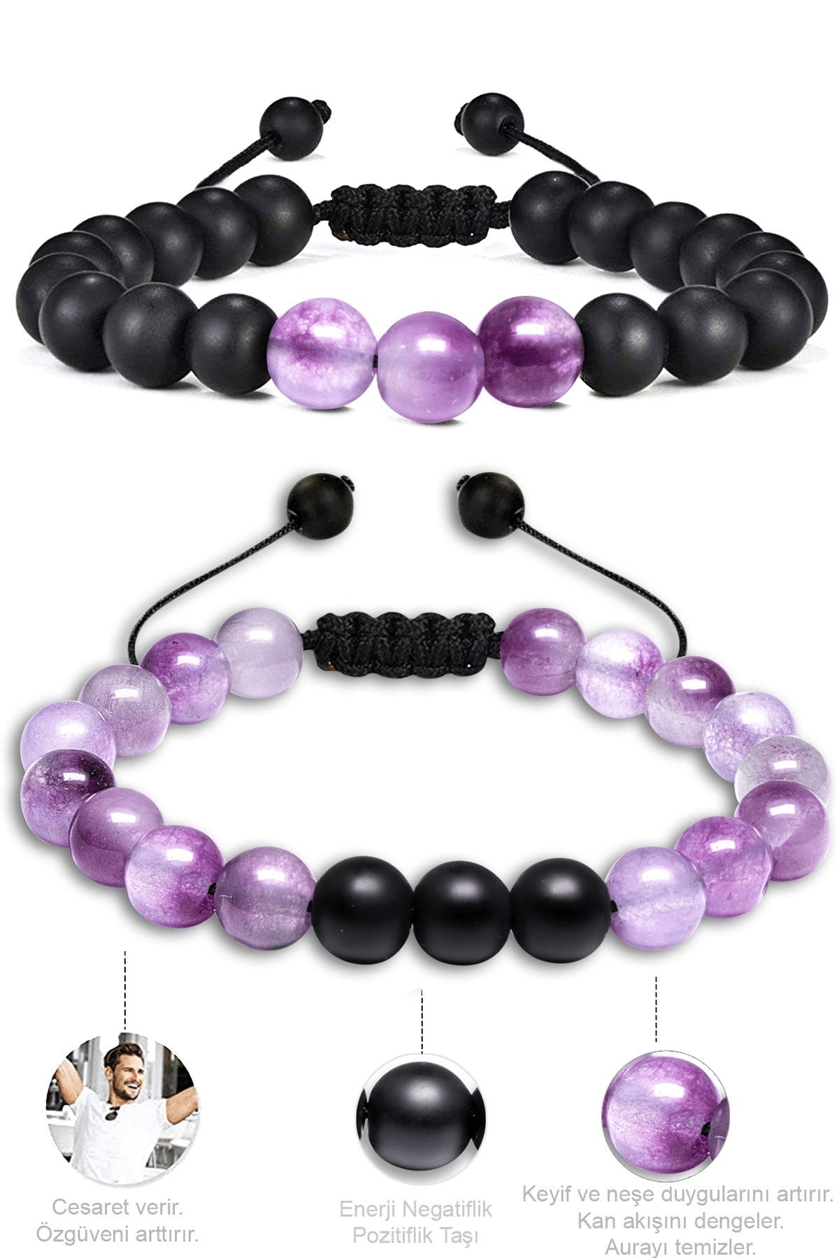 Sertifikalı Doğal Şeffaf Mor Ametist Oniks Taşı Doğal Taş Bileklik Seti