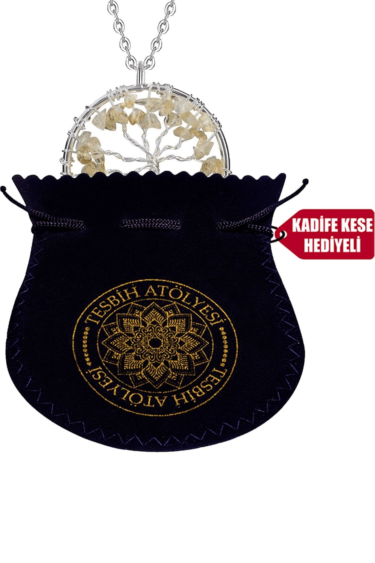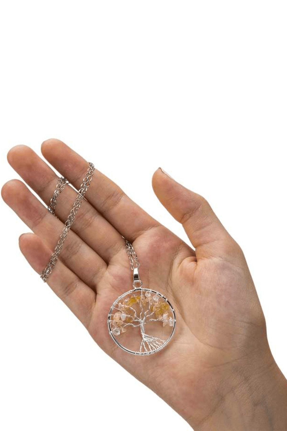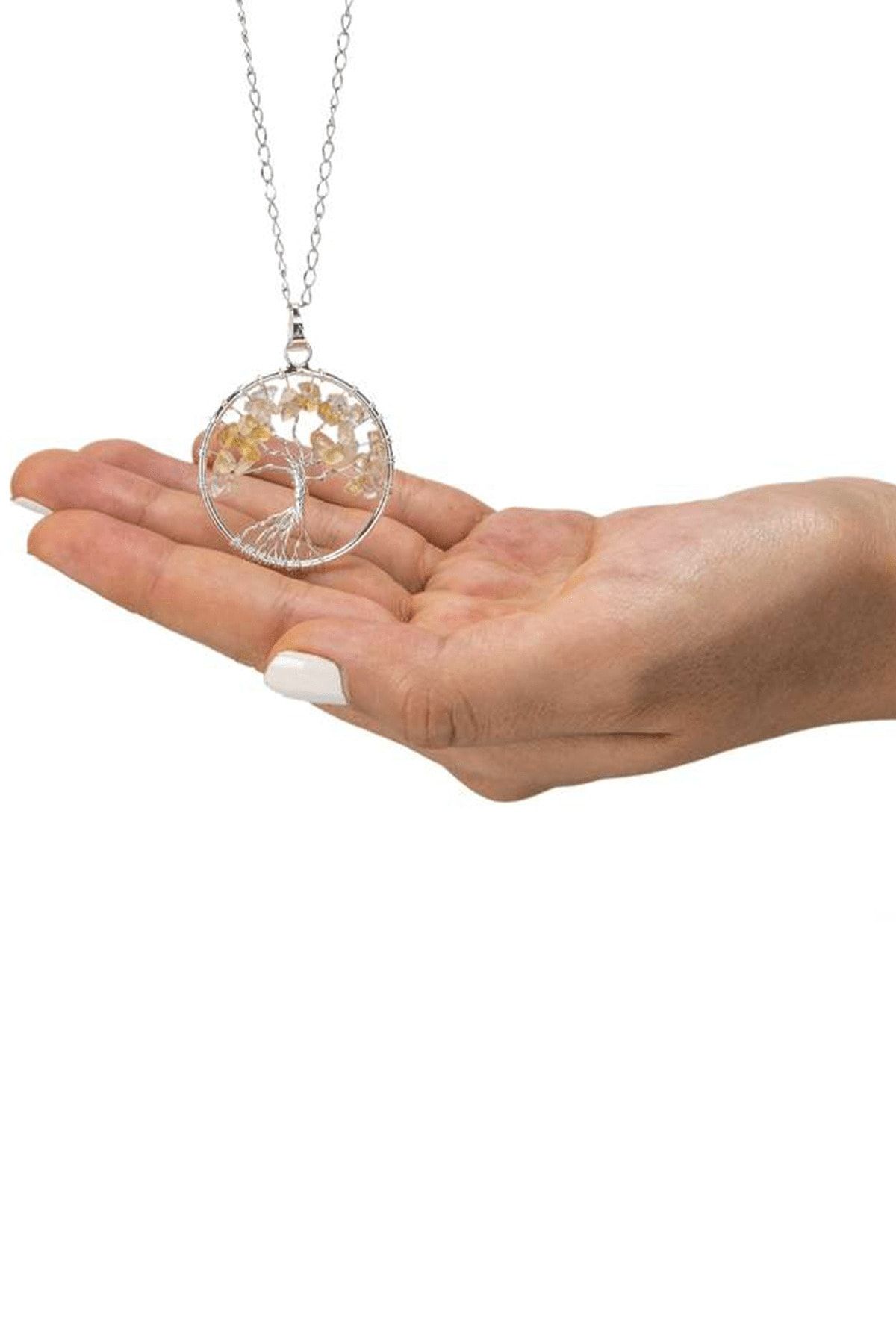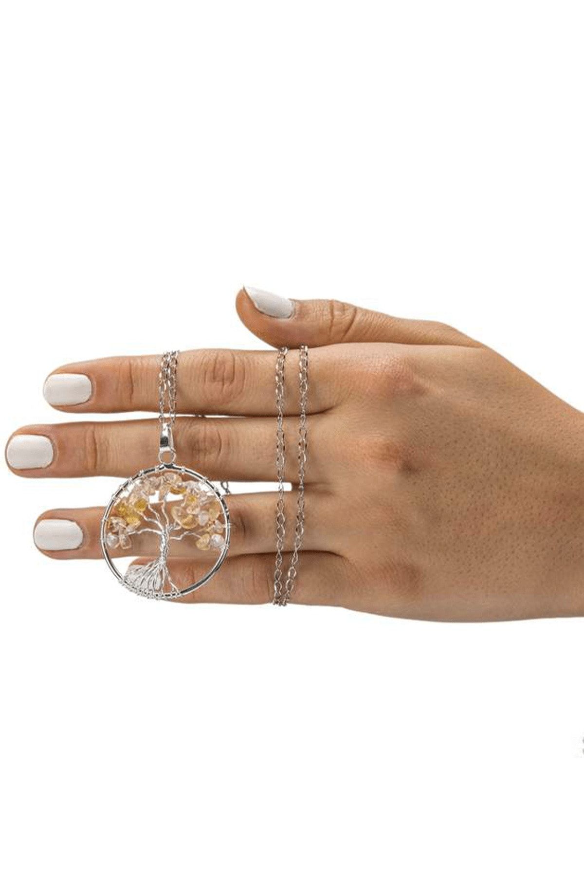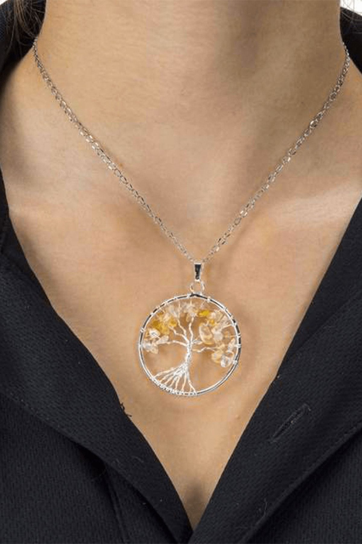 Sertifikalı Doğal Sitrin Taşı Hayat Ağacı Kolye Doğal Renk Renk Universal Beden 50 cm Beden Sarı Renk