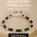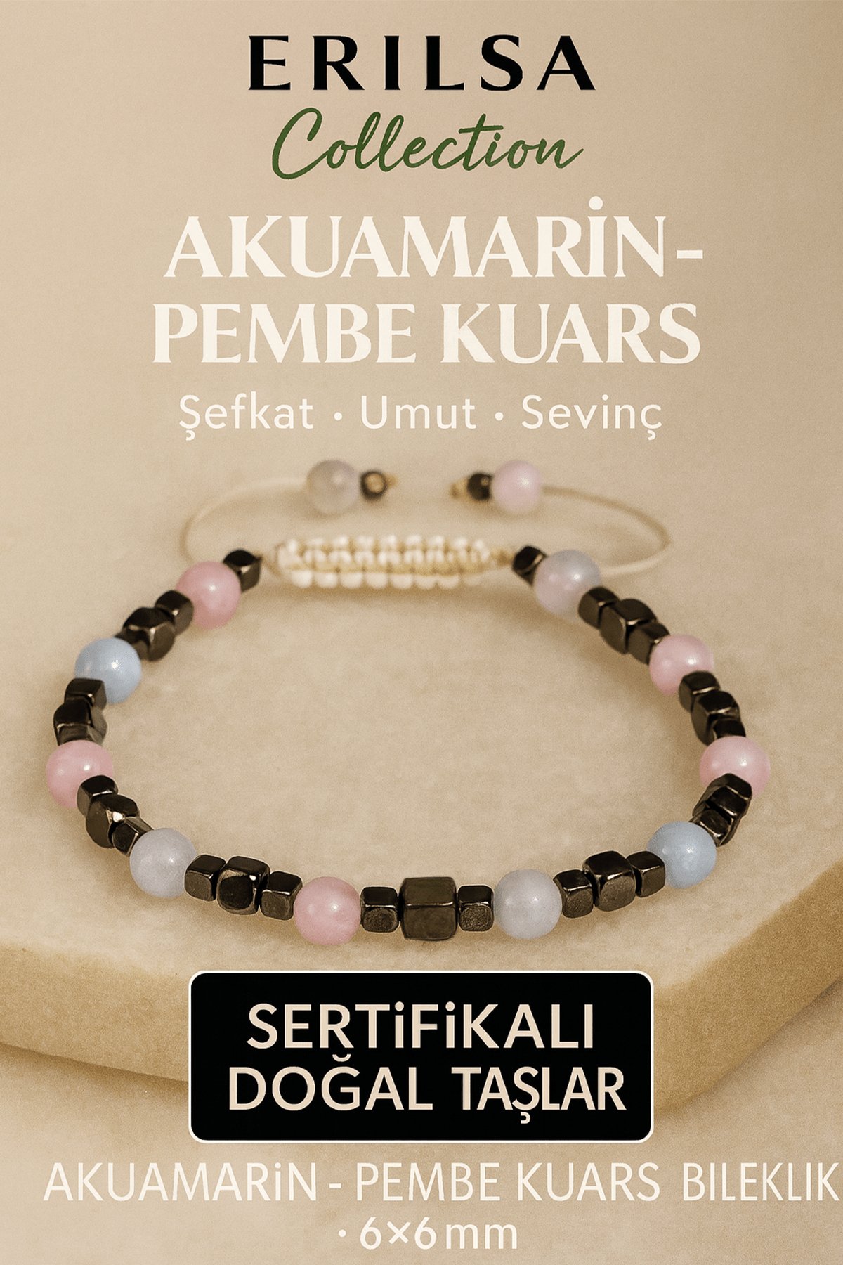 Sertifikalı Doğal Terahertz Akuamarin – Pembe Kuvars Taşı Bileklik 6×6 mm Şefkat ve Umut Taşı