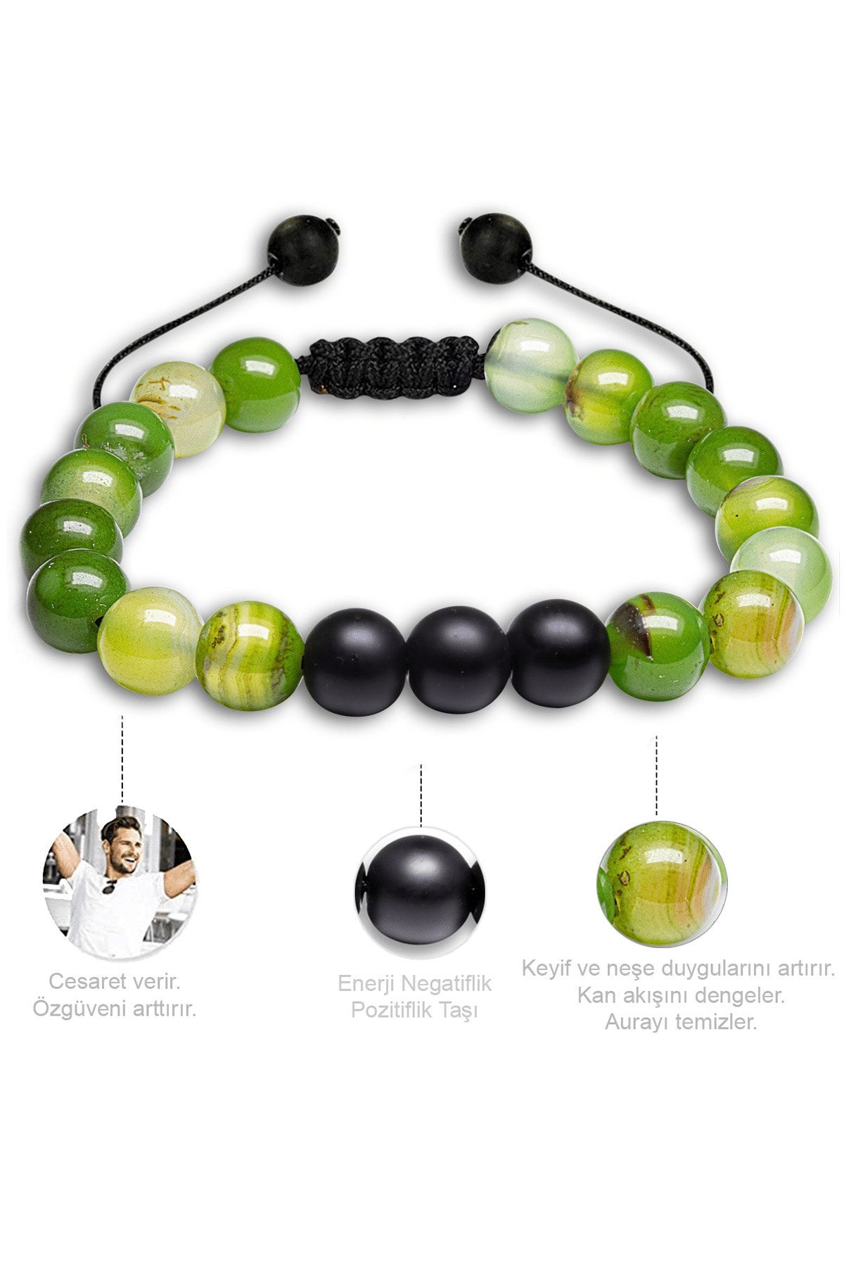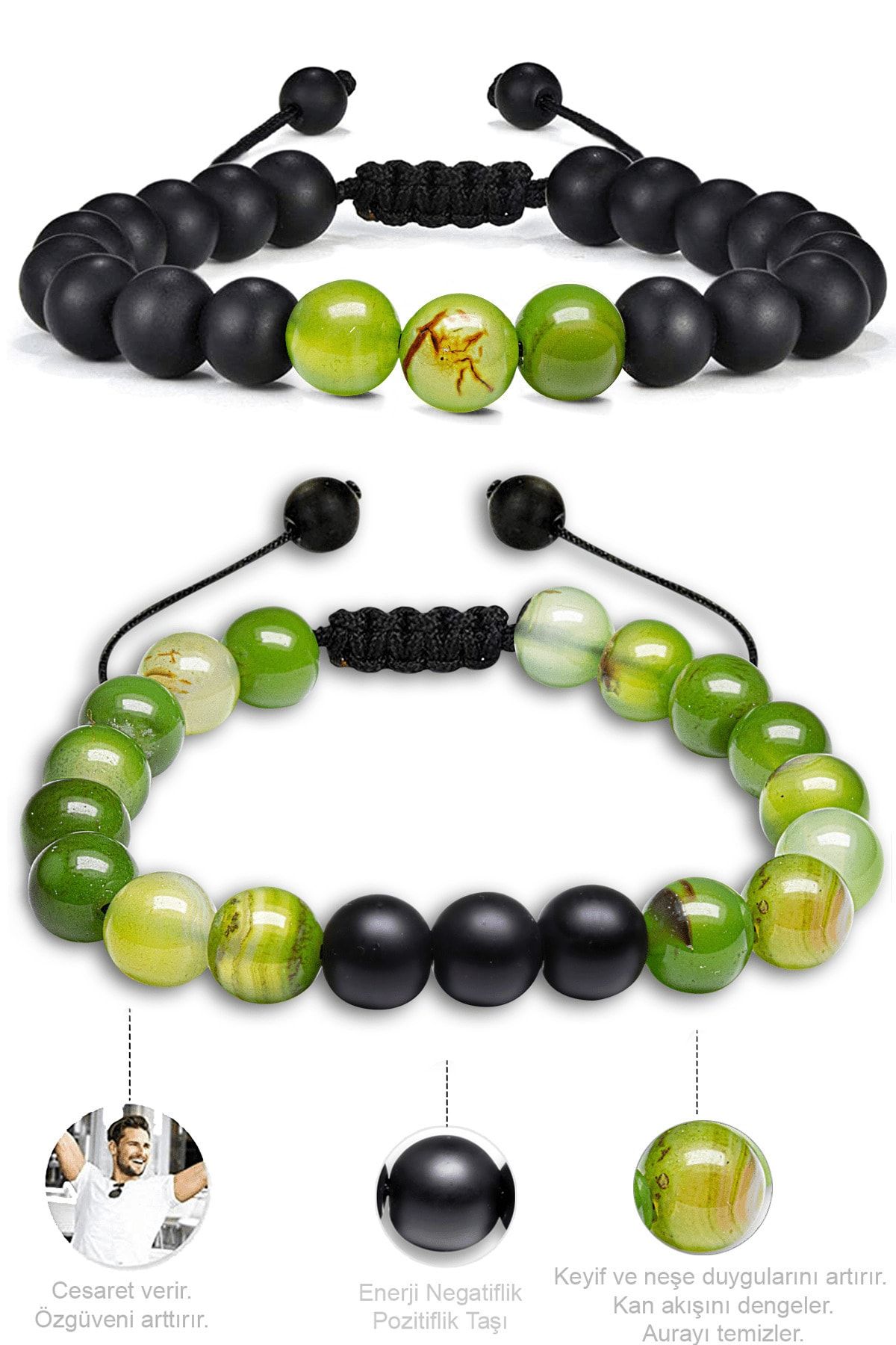 Sertifikalı Doğal Yeşil Akik Oniks Taşı Doğal Taş Bileklik Seti
