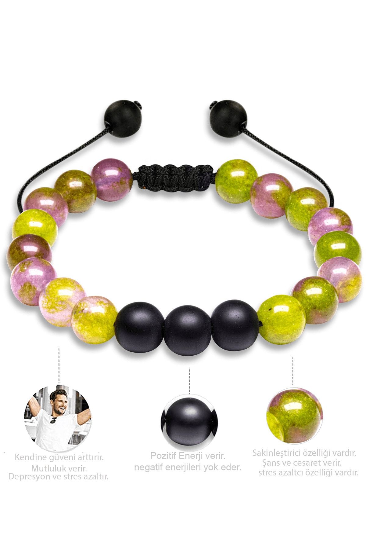 Sertifikalı Doğal Yeşil Yosun Akik Oniks Taşı Doğal Taş Bileklik Seti