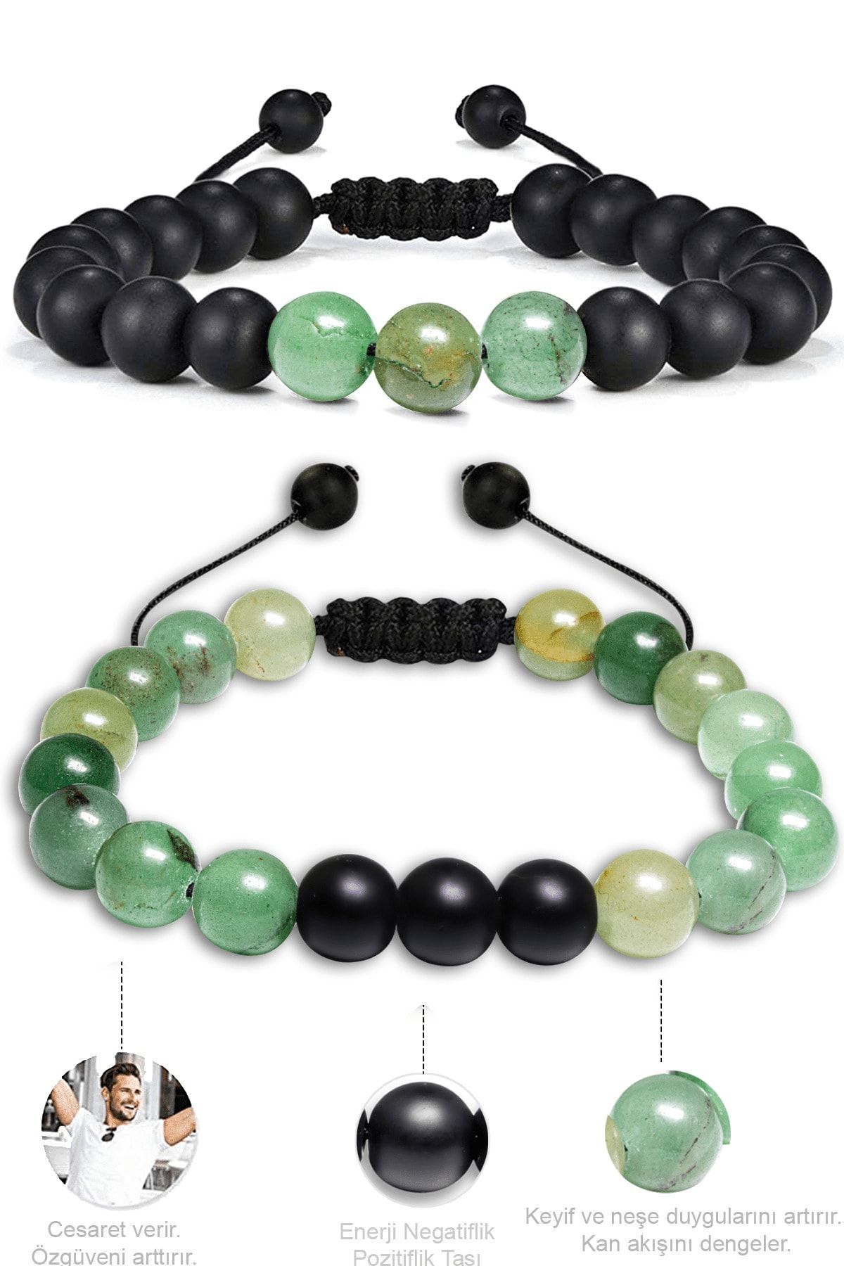 Sertifikalı Doğal Yosun Akik Oniks Taşı Doğal Taş Bileklik Seti