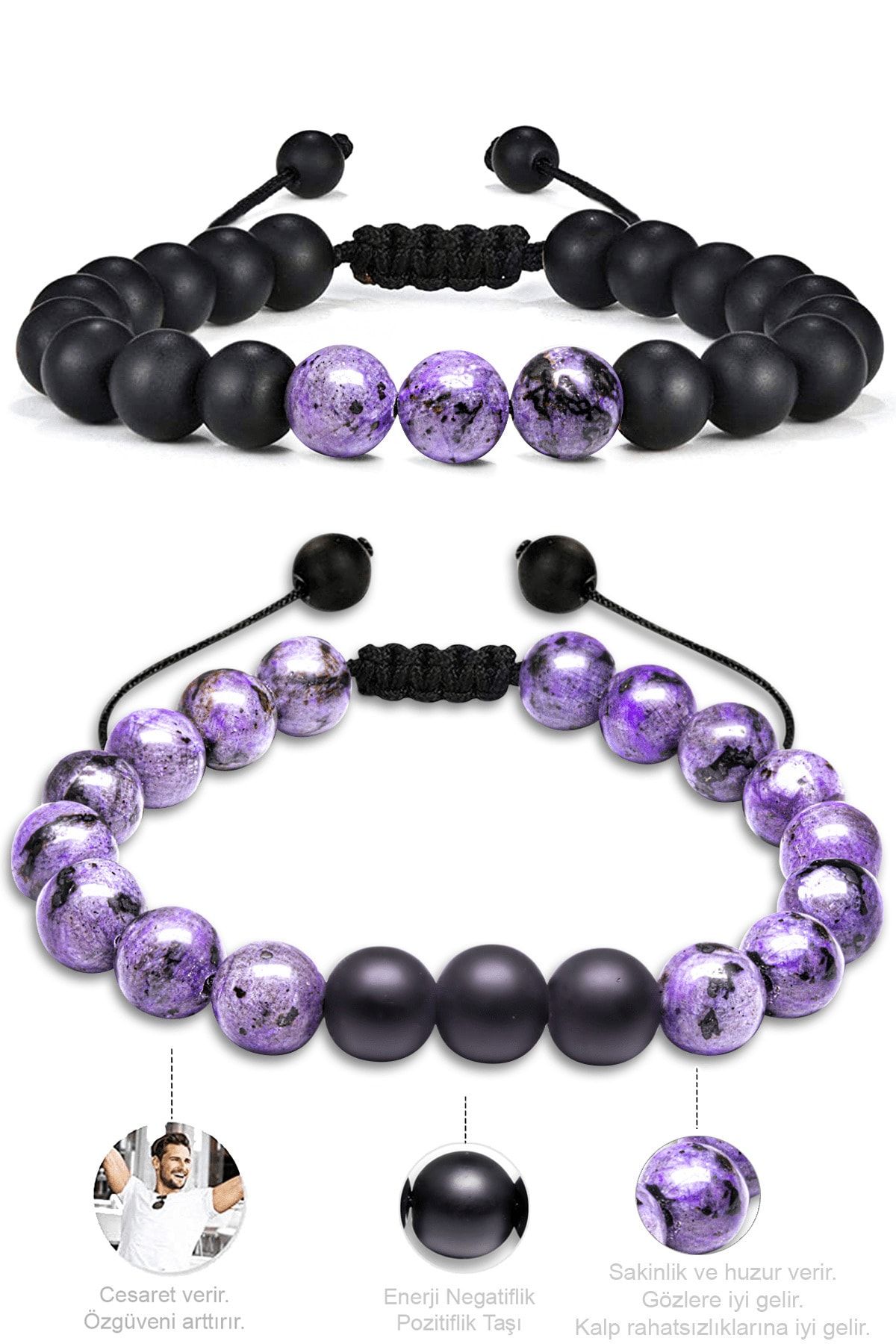 Sertifikalı Doğal Yosun Akik Oniks Taşı Doğal Taş Bileklik Seti