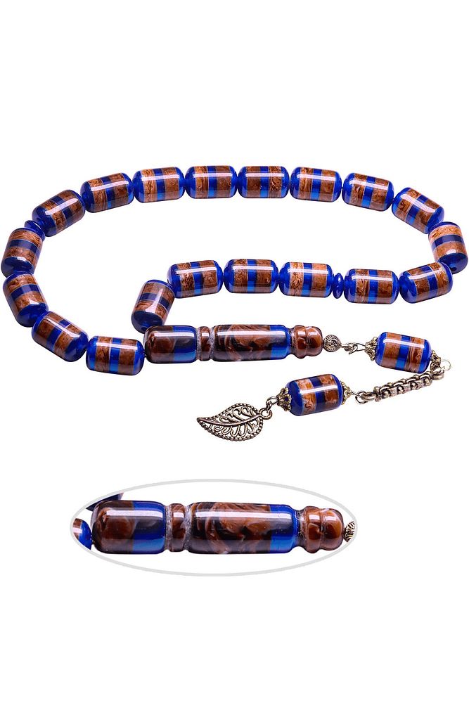 Sertifikalı Efe Maskot Sürmeli Mavi Kahverengi Hareli Toz Kehribar Tesbih