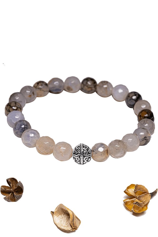 Sertifikalı Fasetli Aaa+ Siyah Beyaz Çizgili Akik Taşı Bileklik - Gümüş Aparatlı