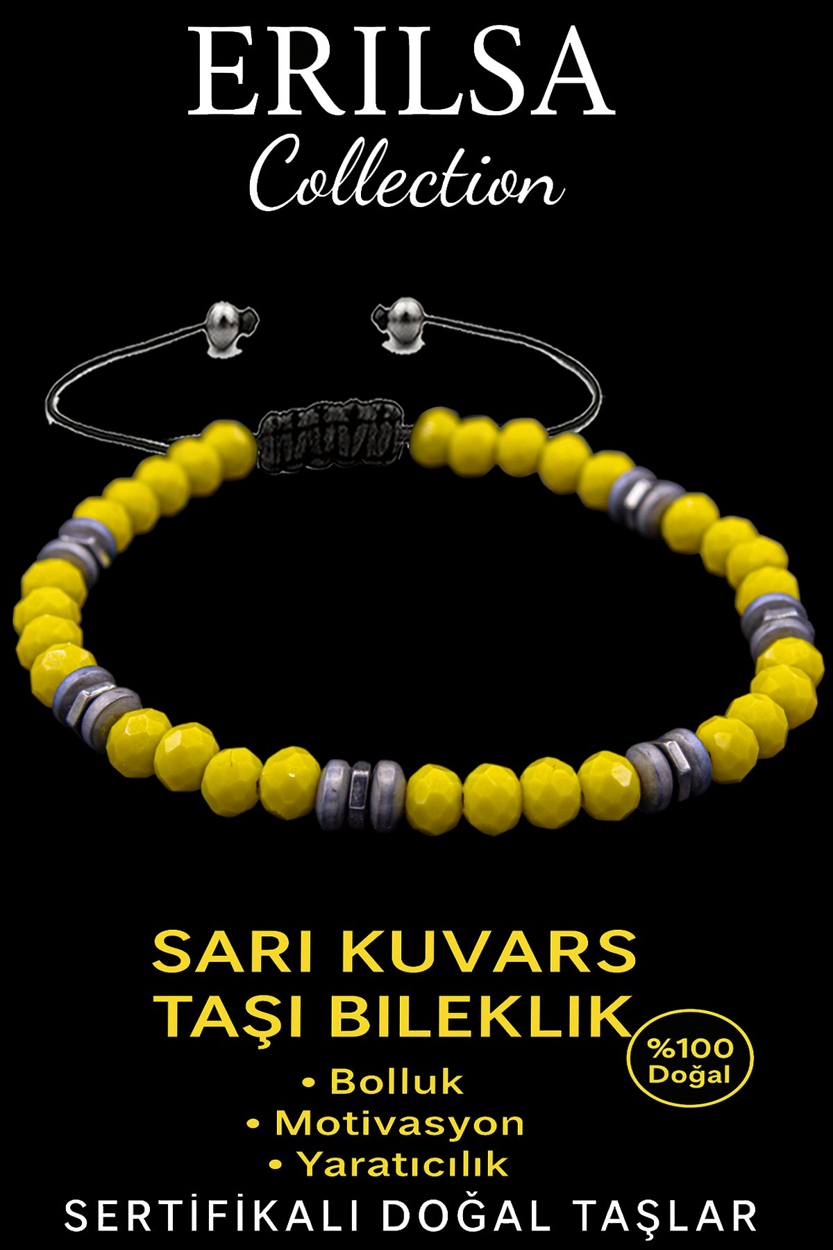 Bu sertifikalı AAA+ fasetli Terahertz ve sarı kuvars taşlarından oluşan ince model bileklik, negatif enerjiyi arındırarak neşe ve enerji verir. Fiziksel olarak dayanıklı ve hafif yapısıyla günlük kullanımda konfor sunar. Sarı kuvars, pozitif duyguları ve canlılığı destekleyerek özgüven ve mutluluğu artırır; Terahertz ise zihinsel berraklık ve odaklanmayı güçlendirir. Aslan, İkizler ve Yay burçları ile yüksek uyum gösterir; meditasyon ve enerji çalışmalarında içsel motivasyon ve coşku hissi yaşamanıza yardımcı olur. Zarif faceted kesimi ve ince tasarımı, tek başına şıklık katarken diğer doğal taş bilekliklerle kombin edildiğinde enerjisel etkiyi maksimuma taşır. Erilsa Collection doğal taş markası güvencesiyle sunulmaktadır.