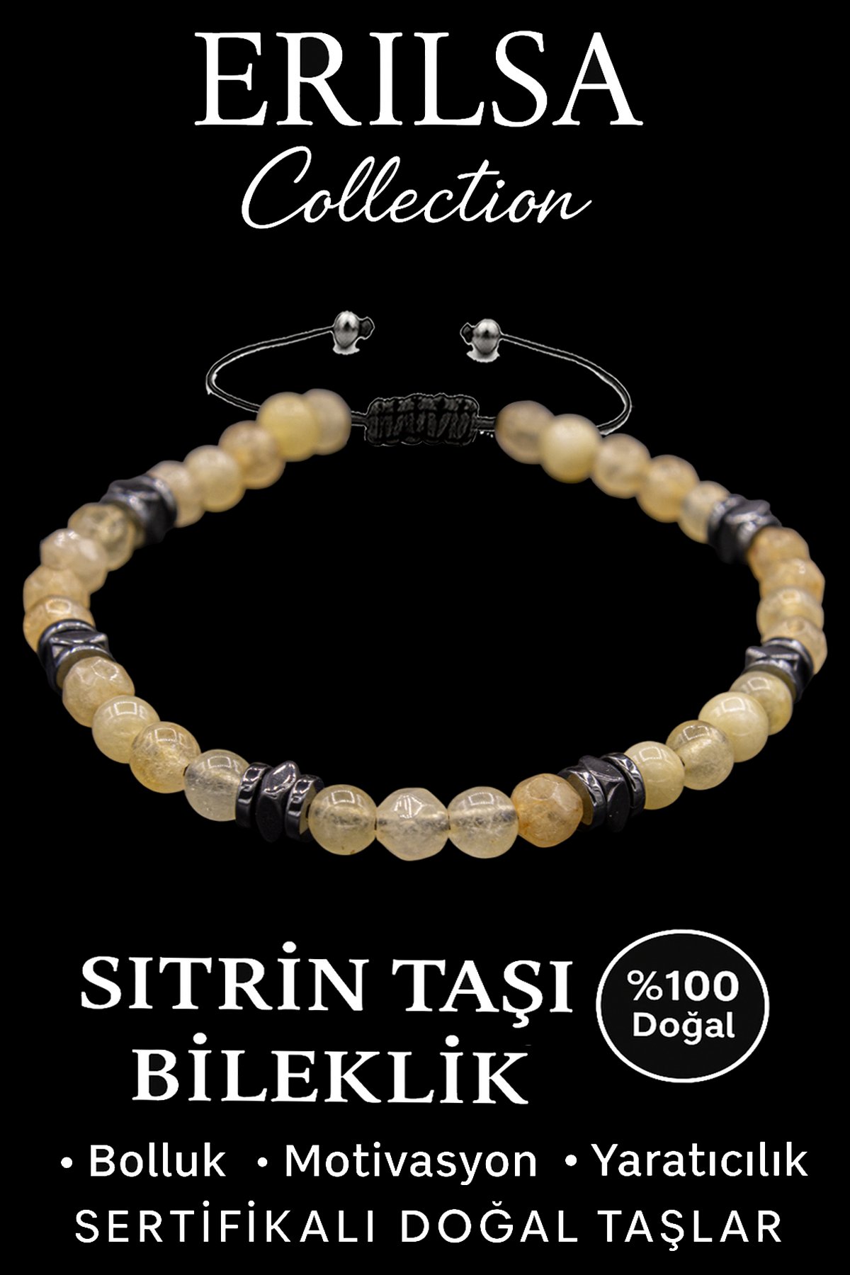 Sertifikalı Fasetli AAA+ Terahertz ve Sitrin Taşı Bileklik – İnce Model Refah ve Başarı
