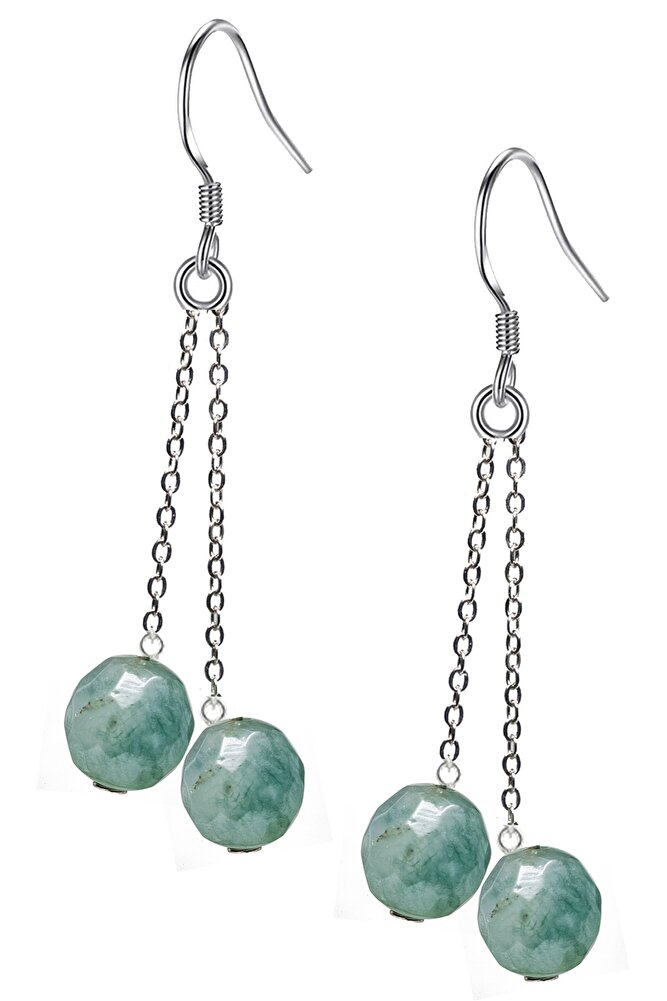 Sertifikalı Fasetli Doğal Amazonit Taşı Gümüş Küpe