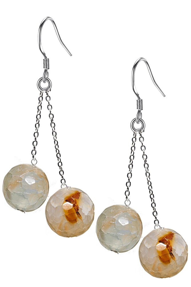 Sertifikalı Fasetli Doğal Tibet Akik Taşı Gümüş Küpe