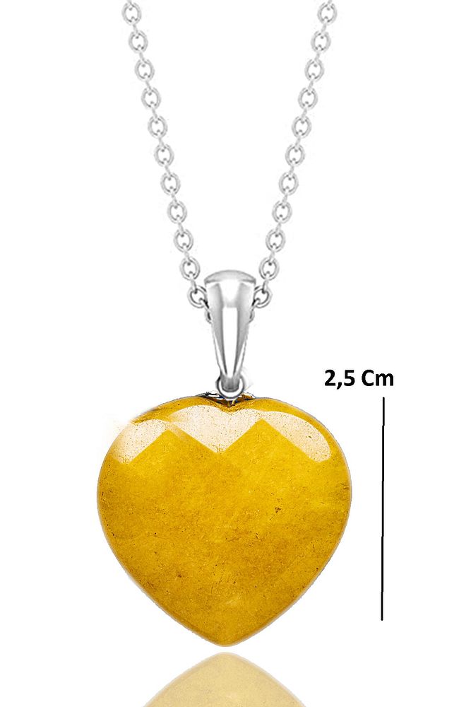Sertifikalı Fasetli Kalp Model Gerçek Sarı Akik Taşı Kolye