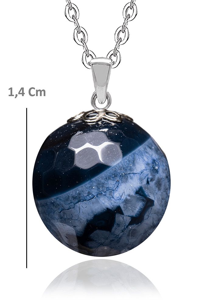 Sertifikalı Fasetli Mavi Akik Doğal Taş Kolye