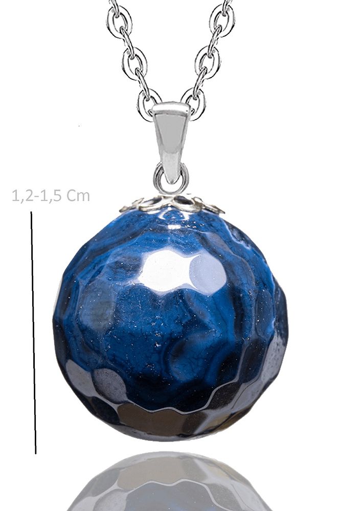 Sertifikalı Fasetli Mavi Akik Taşlı Doğal Taş Kolye