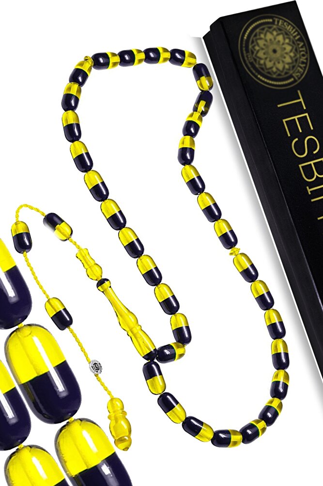 (Kuru Torna İşciliği Ultra Parlak Muhteşem Cilalı Usta İşi Kehribar) ; ; Fenerbahçe kehribar tesbih modelleri, ''Tesbih Atölyesi'' Atölyelerinde ustalarımız tarafından kuru torna işciliği ile elde özen ile tane tane işlenmektedir. Ürünlerimiz el işciliği olduğu için sınırlı sayıda üretilmektedir. Üzerine üç kat el cilası atılmıştır. Tasarımlarımızda kullandığımız ürünler sizlere özel ağaç kutusu ile gönderilecektir. ; ; Bu tasarımda; Sarı ve lacivert renkli kapsül kesim kehribar yüksek kaliteli kehribar kullanılmıştır. Asla sararma ve solma yapmayacaktır. Sıralı sistem ile dizilmiştir. ; ; Üretildiği Malzeme ; Kehribar ; Renk ; Sarı ve Lacivert Renk ; Ağırlık ; 20-30gr ; Tane Şekli ; 6x11 mm ; Tane Ölçüsü ; Kapsül Kesim ; Toplam Uzunluk ; 20-30 cm ; İmame ve Püskül Maddesi ; Sistemli ;