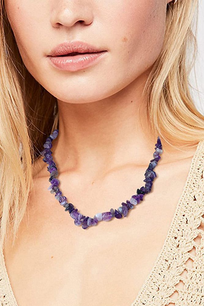 Sertifikalı Gerçek Doğal Ametist Kırık Taşlı Kolye