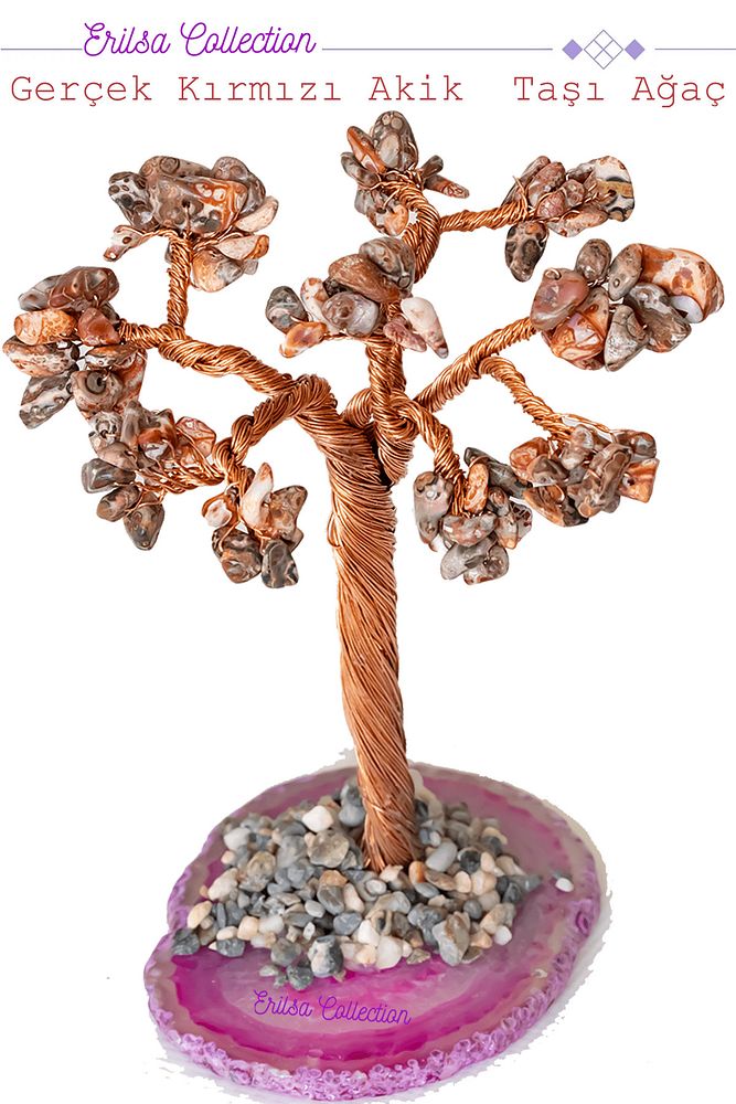 Sertifikalı Gerçek Kahverengi Yıldız Taşı Ağaç - Akik Plakalı