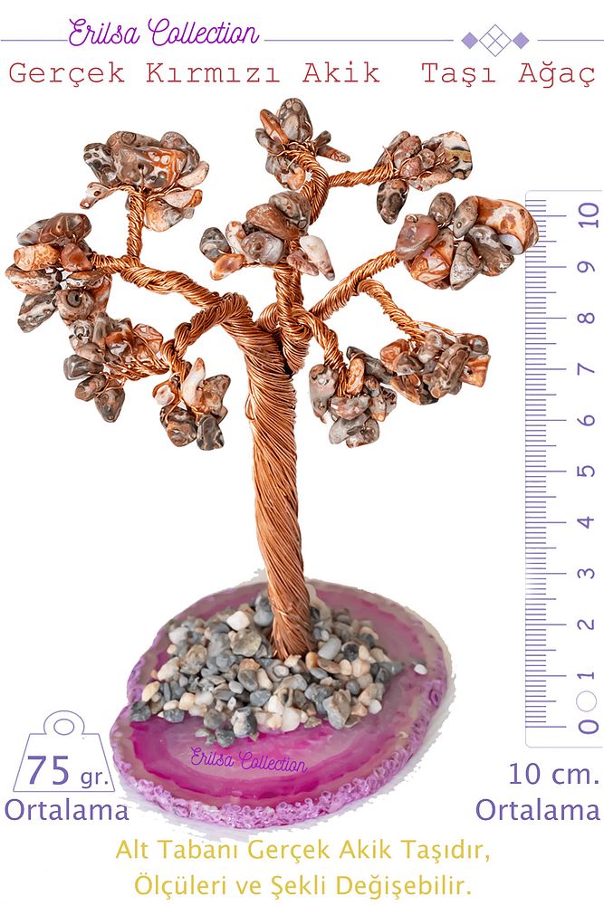 Gerçek Kırmızı Akik Doğal Taşı Ağaç; gerçek sedef doğal taşları arasından özenle seçilerek üretilmiştir. El yapımı olan bu ağaçlar, doğaları gereği resimdeki ile farklılık gösterebilir. Ölçüleri aşağıda teknik detaylarda belirtilenle yaklaşık olarak aynıdır, fakat şekilleri muhakkak farklıdır. Bu bir hata değil aksine ürünün fabrikasyon ürün olmadığının, gerçek doğal taş ve el yapımı olduğunun önemli bir göstergesidir