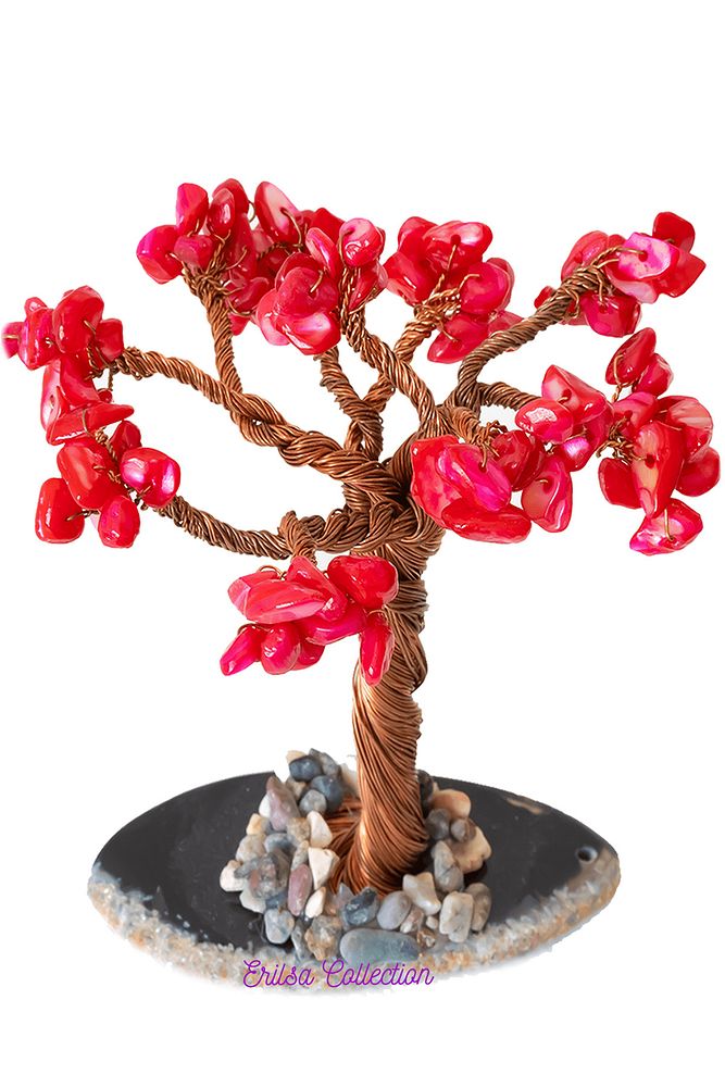 Sertifikalı Gerçek Kırmızı Sedef Doğal Taşı Ağaç - Akik Plakalı