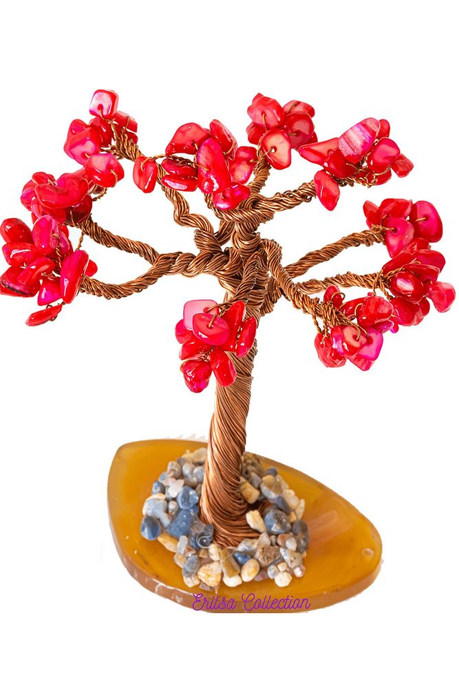 Sertifikalı Gerçek Kırmızı Sedef Doğal Taşı Ağaç - Yemen Akik Plakalı