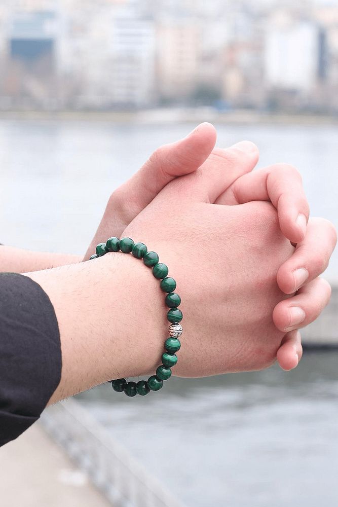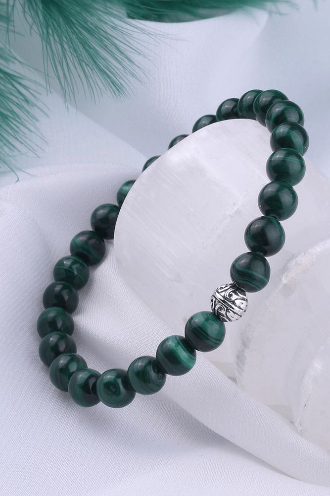 Sertifikalı Gerçek Malahit - Malahit Taşı Bileklik (Gümüş Aparatlı)