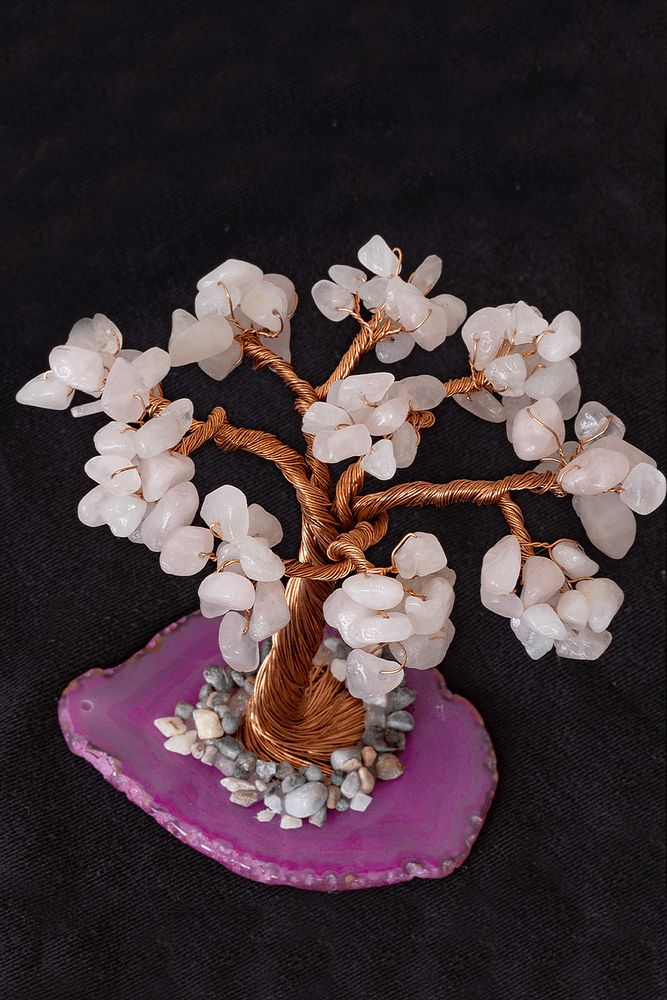 Gerçek Pembe Kuvars Doğal Taşı Ağaç
