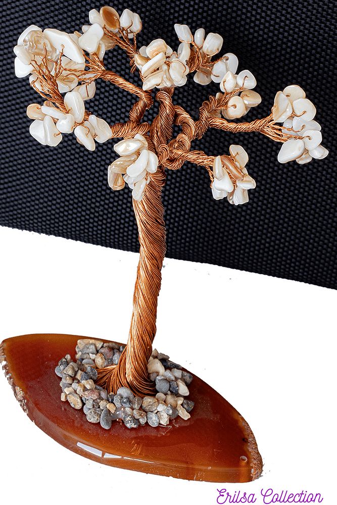 Piyasada bulunan diğer doğal taş ağaçların aksine, maksimum seviyede doğal olması için, plastik ve türevleri, ağır yapıştırıcılar ya da kimyasallar kullanılmamıştır. Enerjisel anlamda kayıp yaşamaması için saf bakır tellere, gerçek freeform dediğimiz kırık taşlar dizilmiştir. Freeform seçilmesinin amacı yaprak formuna çok yakın bir görsellik oluşturmasıdır. Kullanılan taş miktarı yüksektir, her dalda yaklaşık 10-12 adet taş bulunmaktadır. Ana gövdenin sabit durabilmesi için, yine gerçek taş olan akik plaka kullanılmış ve bakır tellerden geçen enerjinin tabanda toplanması sağlanmıştır. Gövde ile tabanı birleştirmek için organik bir yapıştırıcı kullanılmış. Görsel açıdan tamamlanması adına bu birleşme yeri gerçek kristal grubu taşlarla kapatılmıştır.