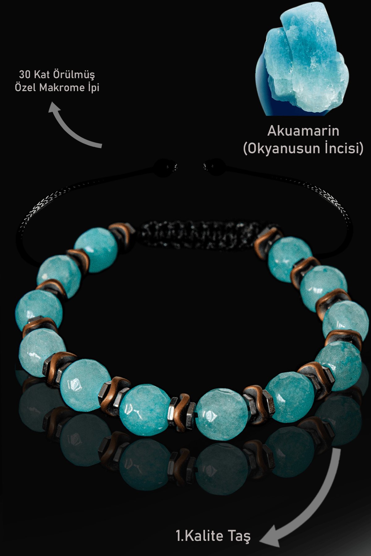 Sertifikalı Gerçek Terahertz – Akuamarin Taşı Bileklik – Ayarlamalı