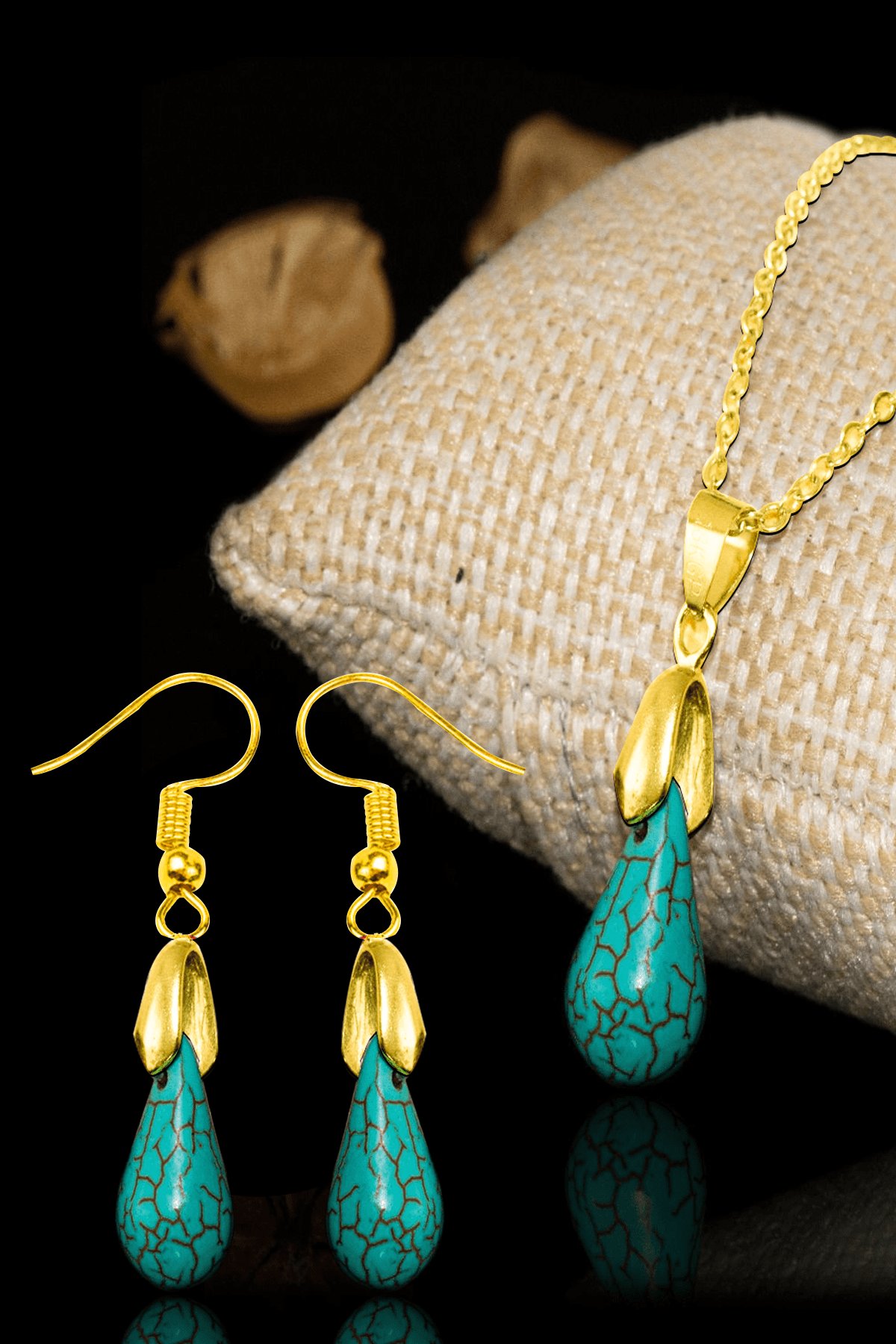 - ÜRÜN : Doğal Firuze – Turkuaz Taşı Kolye ve Küpe