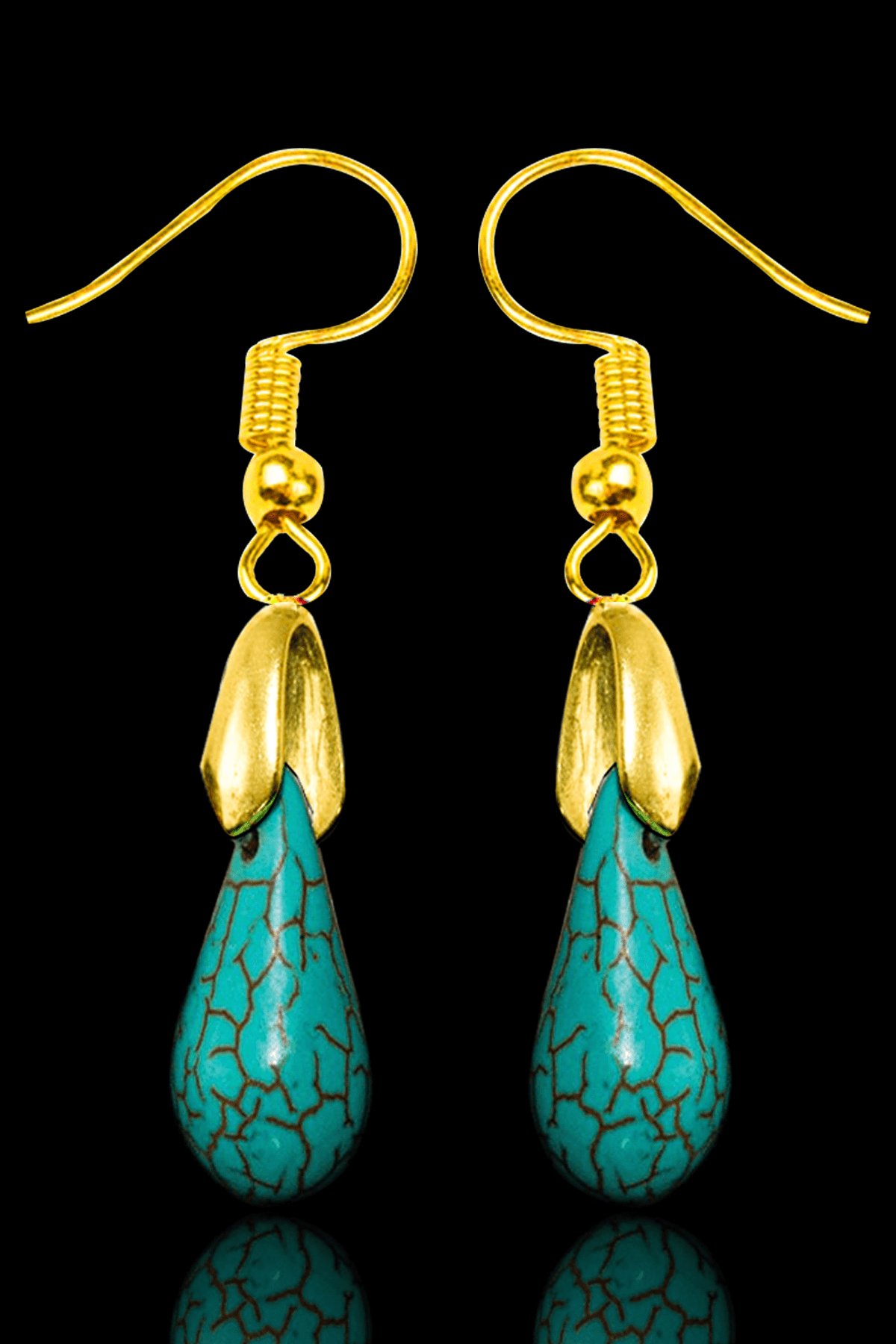 Sertifikalı Gold Damla Kesim Firuze - Turkuaz Taşı Küpe