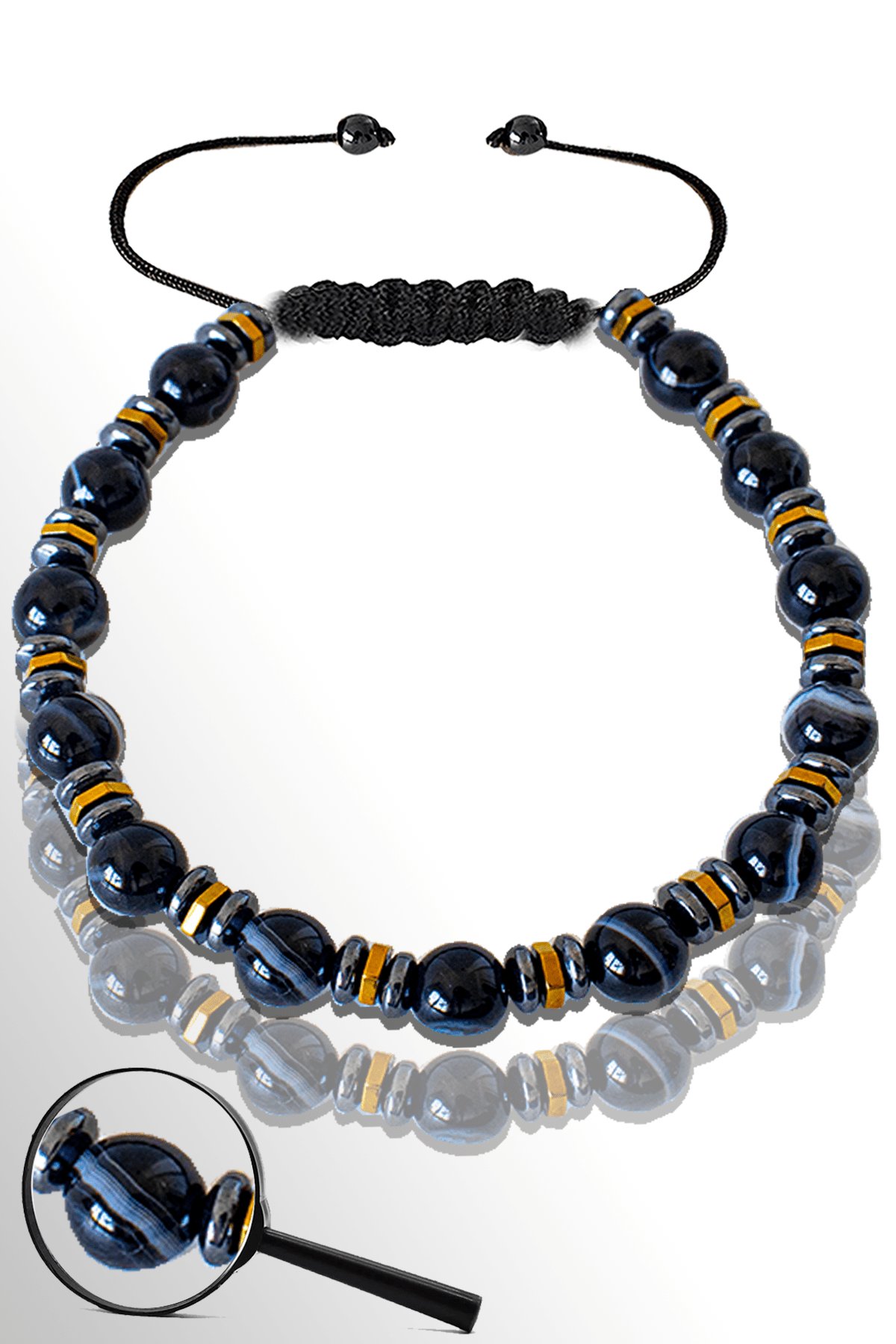 Sertifikalı Gold Hematitli 6 Mm Doğal Siyah Göz Akik Taşı Bileklik - Göz Akiği