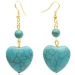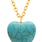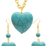 Sertifikalı Gold Kalp Model Firuze Taşı Kolye ve Küpe Seti (Turkuaz Taşı)