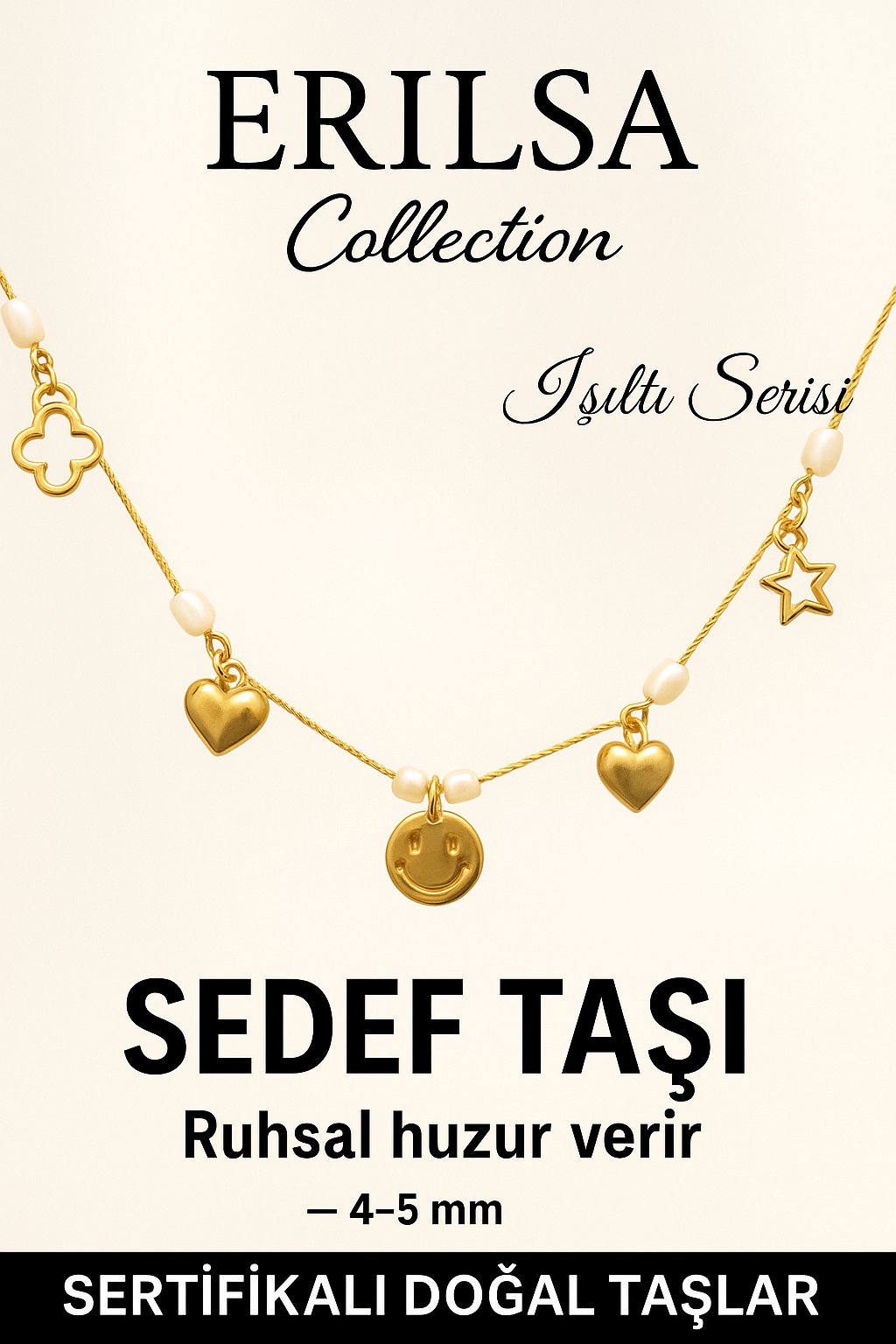 Sertifikalı Gold Sedef Taşı Şans Charm Kolye - Işıltı Serisi