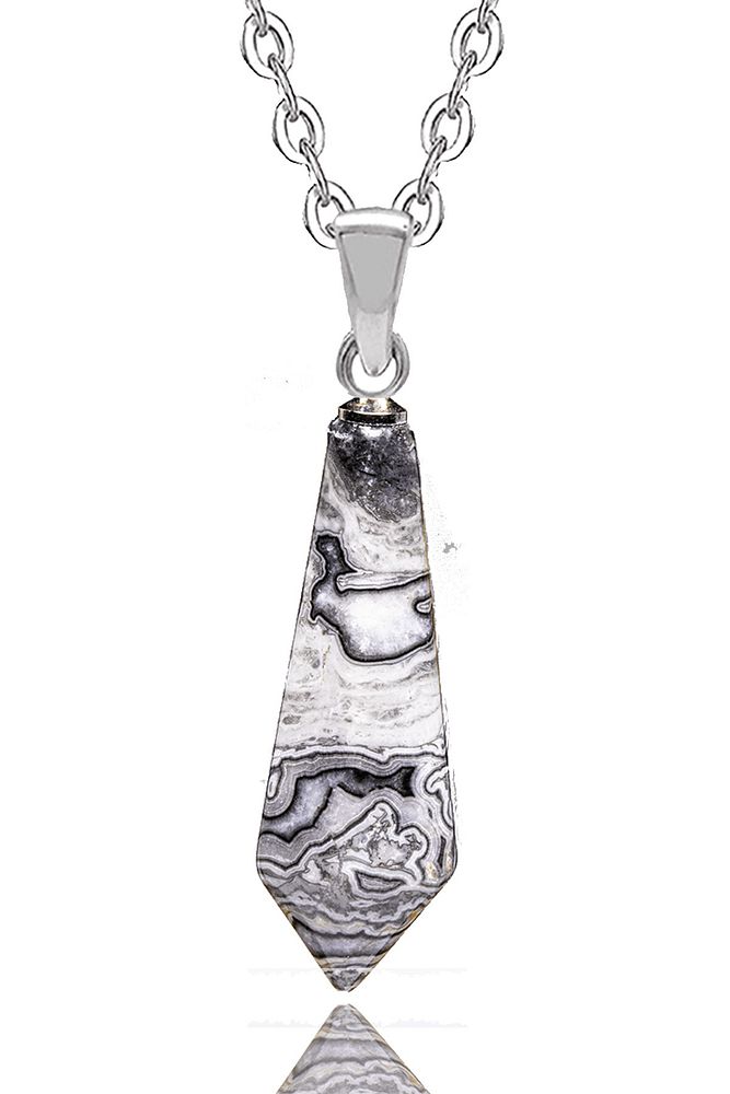 Sertifikalı Gümüş Aparatlı Doğal Desenli Jasper Taşı Kolye