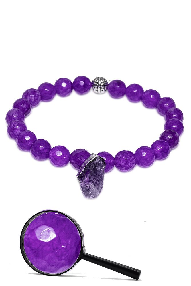 Sertifikalı Gümüş Aparatlı Doğal Mor Akik Taşı Bileklik Ametist Sallantılı