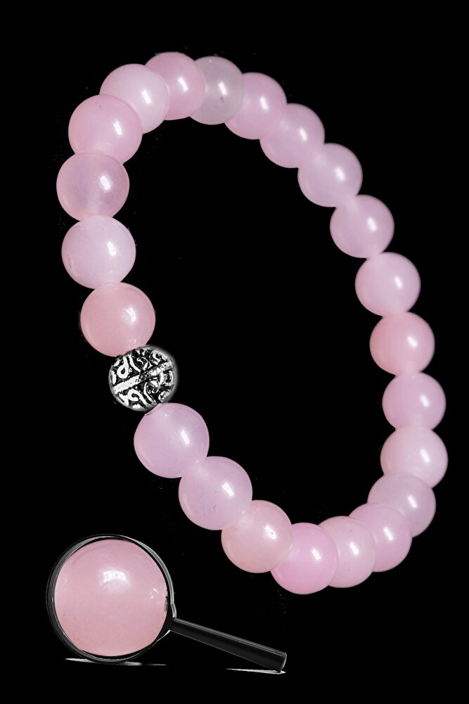 Sertifikalı Gümüş Aparatlı Doğal Pembe Kuvars Taşı Bileklik