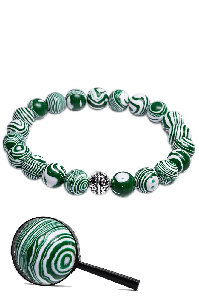 Sertifikalı Gümüş Aparatlı Doğal Yeşil Malahit Taşı Bileklik