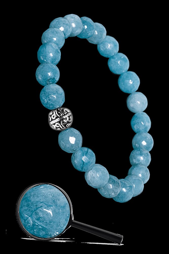 Sertifikalı Gümüş Aparatlı Fasetli Doğal Akuamarin Taşı Bileklik