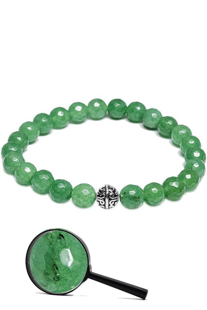 Sertifikalı Gümüş Aparatlı Fasetli Doğal Aventurin Taşı Bileklik