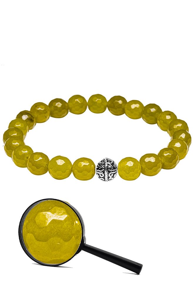 Sertifikalı Gümüş Aparatlı Fasetli Doğal Olivin Akik Taşı Bileklik