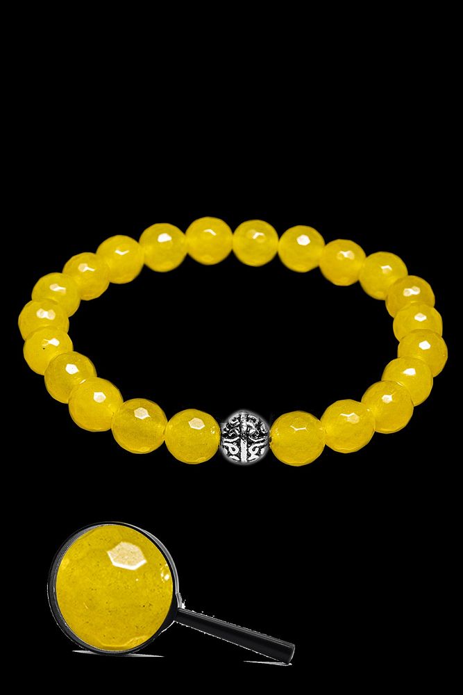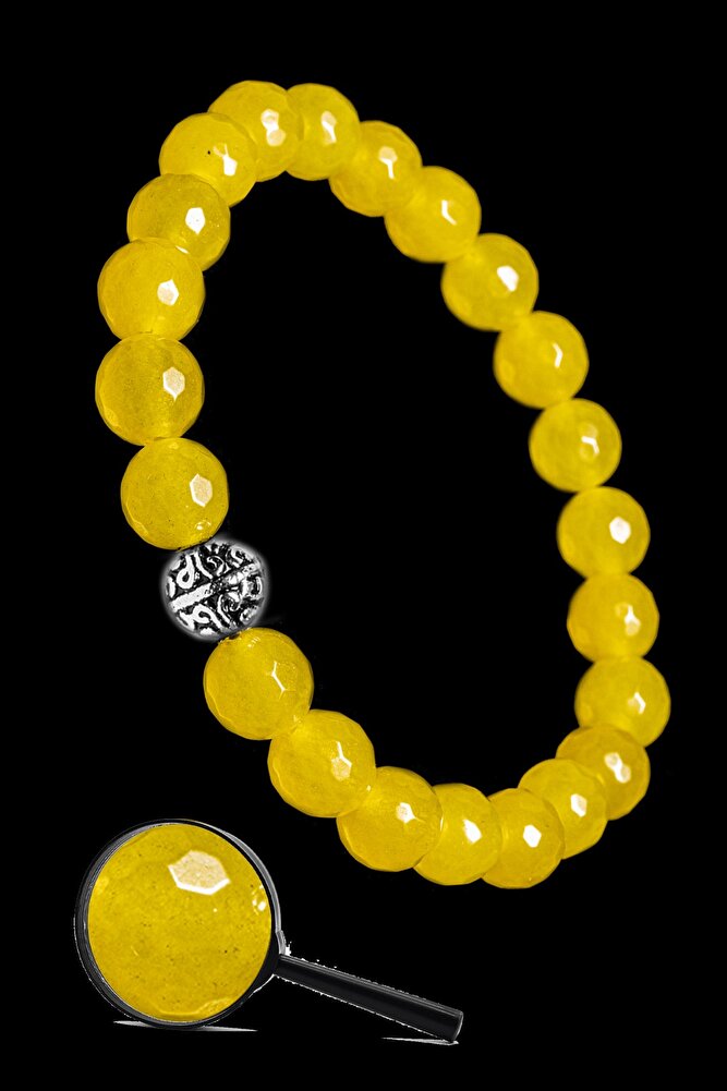 Sertifikalı Gümüş Aparatlı Fasetli Doğal Sarı Akik Taşı Bileklik