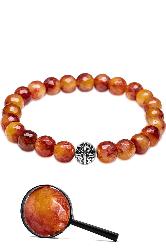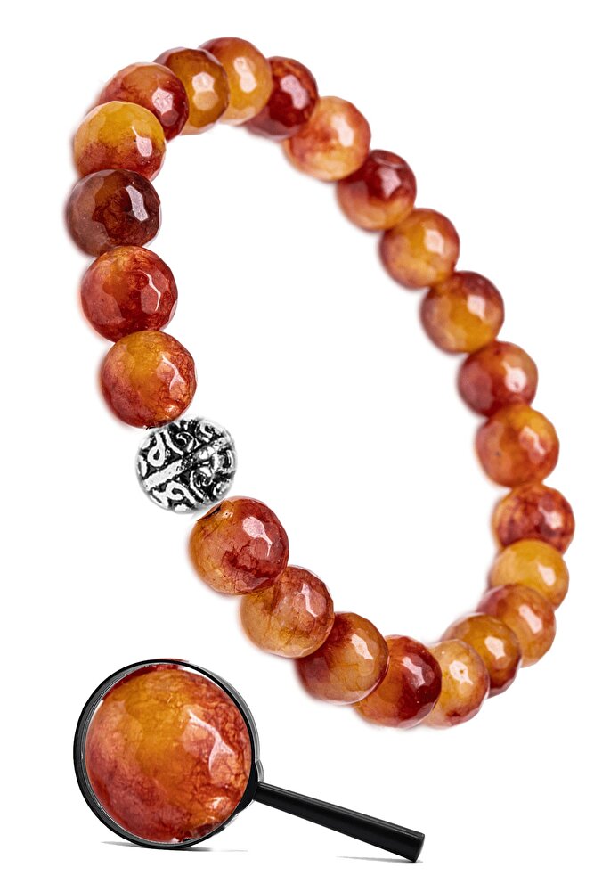 Sertifikalı Gümüş Aparatlı Fasetli Doğal Sarı Kırmızı Kuvars Taşı Bileklik