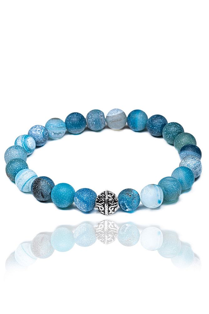 Sertifikalı Gümüş Aparatlı Mat Mavi Akik Taşı Bileklik