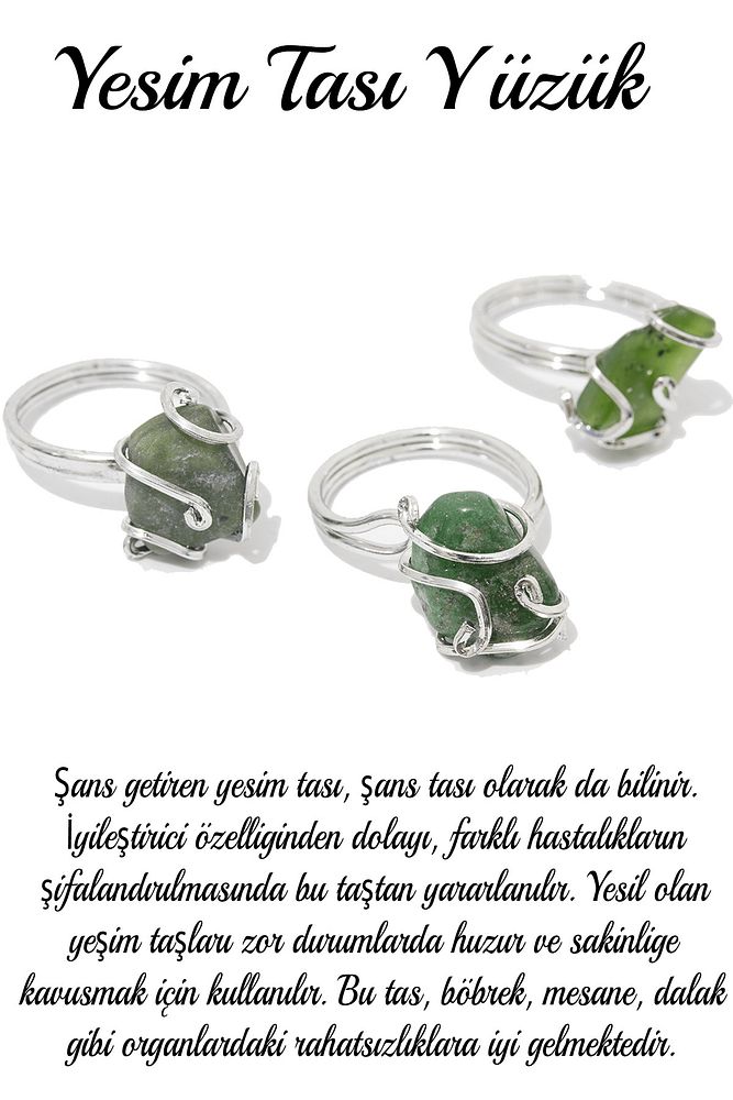 Ürün Kutusu Ürününüz '' Tesbih Atölyesi Logolu Kadife Kese '' ile gönderilmektedir. Ürün ya da Doğal Taş Açıklaması Doğal taş yüzük modelleri ''Tesbih Atölyesi'' Atölyelerinde usta ellerde siz değerli müşterimiz için özenle hazırlanmaktadır. Ürünlerimizin tamamı el emeği olup sınırlı sayıda üretilmektedir. Tasarımda kullanılan taşların her birini farklı ülkelerden ithalat etmekteyiz. Dünya'nın en kaliteli taşlarını tasarımlarımızda kullanmaktayız. Orijinallik ve garanti belgesi adınıza gönderilir. Tasarımda kullandığımız doğal taşların hiç biri birbirinin aynısı olmadığı için küçükte olsa farklılıklar gösterebilir Bu tasarımda; Doğal Kanada Yeşim Taşı kullanılmıştır. Kasadaki desenler oyma el sanatı ile yapılmaktadır. Üretildiği Taş : Kanada Yeşim - Alerji Yapmaz Ana Renk : Doğal Renk Ağırlık : 10-15 Gr Parmak Ölçüsü : Ayarlanabilir Mekanizmalı Her Parmağa Uyumlu! - Maden: 800 ayar gümüş Renk Atmaz (Çift Koruyuculu Lak Kaplamalı)