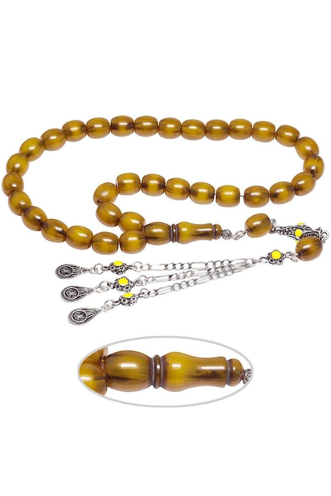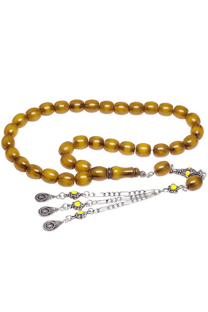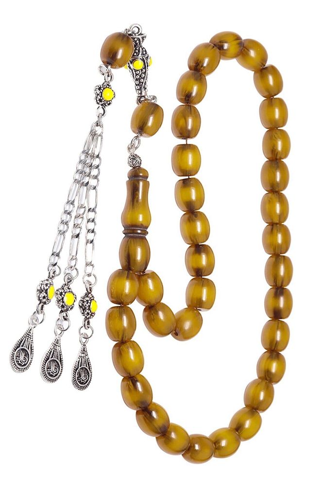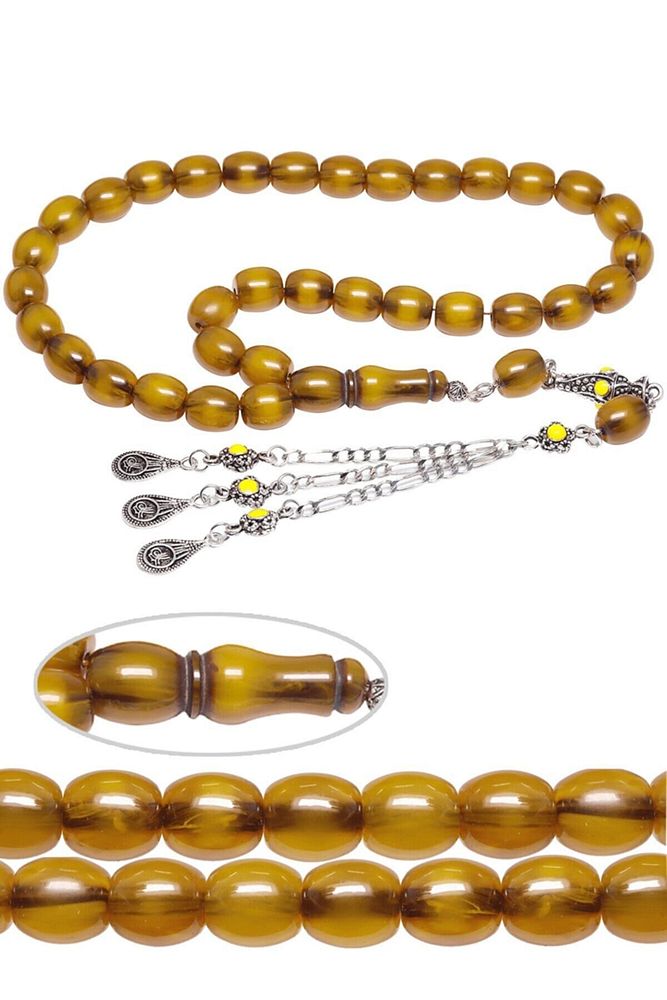 Sertifikalı Halep Püskül Sarı Renkli Fıçı Kesim Çubuk Sıkma Kehribar Tesbih
