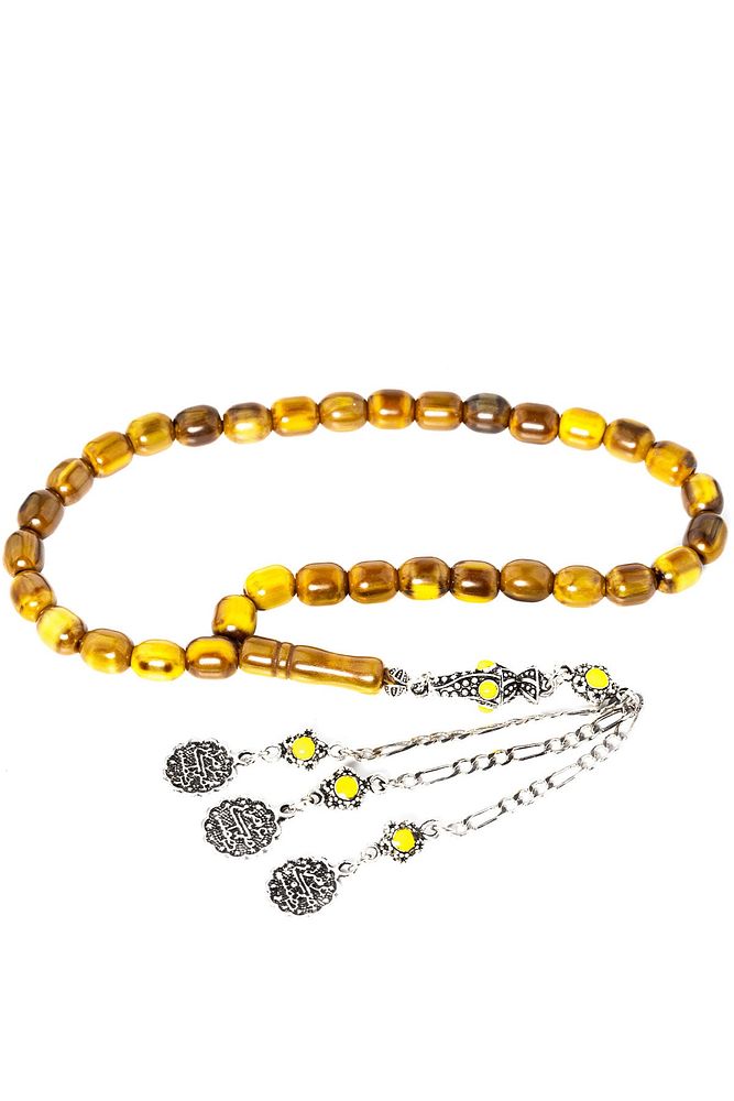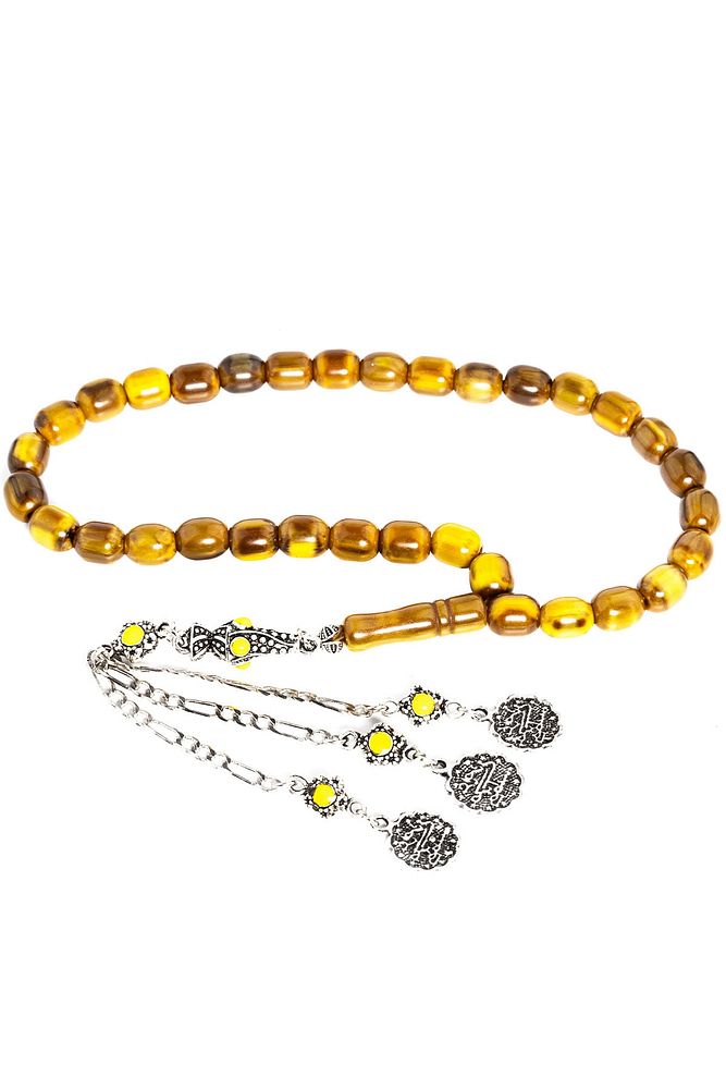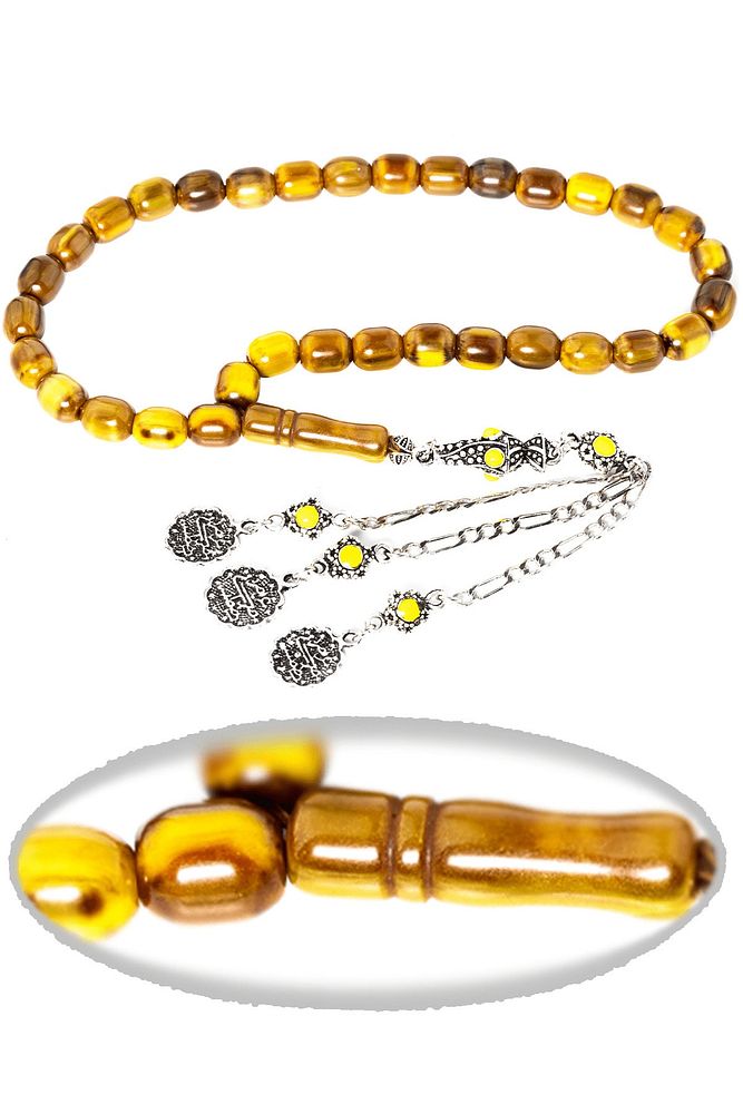 Ürün ya da Doğal Taş Açıklaması (100 Yaşını Aşkın Bir Tarihi Eser) 0smanlı çekoslavak bağa tesbih modelleri, 'Osmanlı döneminde en kaliteli ustalar tarafından özen ile işlenen Almanların bulduğu formül ile yapılan ve formülü kaybolan o dönemde üretilen atalarımızdan, dedelerimizden bize yadigar kalan tesbihlerin tek tek köylerden, yurt dışından ithal ederek sizlere sunmuş bulunmaktayız. Ürünlerin piyasa değeri 40-50 $'a kadar çıkmaktadır. Tesbih Atölyesi, sürümden kazanan bir firma olmuştur. Bu tasarımda; Osmanlı çekoslavak bağa kullanılmıştır. Püskül yapımında; Osmanlı halep püskül kullanılmıştır. Çift kaplama rodaj atılıdığı için renk atmaz ve kararmaz bir yapıya sahiptir. Üretildiği Malzeme; Osmanlı Çekoslavak Bağa; Ana Renk; Kahverengi Renk; Ağırlık; 21.2 gr; Tane Şekli; 10x8.5 mm; Tane Ölçüsü; Kapsül Kesim; Toplam Uzunluk; 20-30 cm; İmame ve Püskül Maddesi; Osmanlı Halep Püskülü;